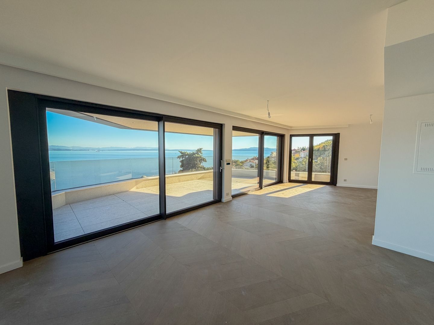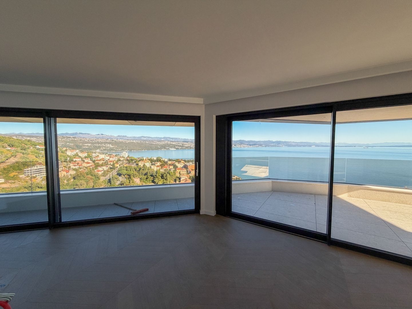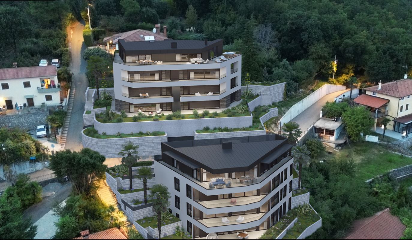OPATIJA, ZENTRUM – Luxusapartment in einem Neubau mit Wellnessbereich, Fitnessstudio und Garage Exklusive Gelegenheit bei Real Estate: Apartment 3 mit 111,58 m² Wohnfläche und einer 14 m² großen Terrasse mit herrlichem Meerblick steht zum Verkauf. Das Apartment verfügt über einen mit dem Aufzug erreichbaren Flur, der in ein großzügiges Wohnzimmer mit Küche, Essbereich und Terrasse führt, sowie zwei Schlafzimmer mit jeweils eigenem Bad. Die raumhohen Badezimmer mit Schiebetüren sorgen für viel Tageslicht und einen wunderschönen Blick auf die Kvarner Bucht. Das Apartment bietet zwei Parkplätze, die auf Anfrage zusätzlich angemietet werden können. Es besteht die Möglichkeit, weitere Parkplätze zu erwerben. Zur Wohnung gehören außerdem ein Abstellraum und ein Außenstellplatz. Dieses moderne Neubaugebäude bietet erstklassige Bauqualität und Ausstattung: - Luftrückgewinnung mit Pollen- und Allergenfilter - Fußbodenheizung in allen Räumen und energieeffiziente Heizung über Wärmepumpen - Fenster und Türen aus braunem Aluminium mit dreifach verglastem IZO-Glas - Smart-Home-System mit Zugangskontrolle (ABB Free@home) - Sanitäreinrichtungen von Hansgrohe, Eichenparkett und Sicherheitstüren - elektrische Aluminium-Jalousien, LED-Beleuchtung und Videoüberwachung der Gemeinschaftsbereiche - gemeinschaftlicher Fitness- und Wellnessbereich - 260 cm Deckenhöhe und ein leiser OTIS-Aufzug mit luxuriöser Kabine Eine perfekte Gelegenheit, eine Luxuswohnung im Herzen von Opatija zu erwerben – in einem Neubau, der Komfort, Technologie und eleganten mediterranen Stil mit einem atemberaubenden Ausblick vereint. Für eine Besichtigung kontaktieren Sie bitte einen unserer vertrauenswürdigen Makler – Beratung auf Deutsch möglich.