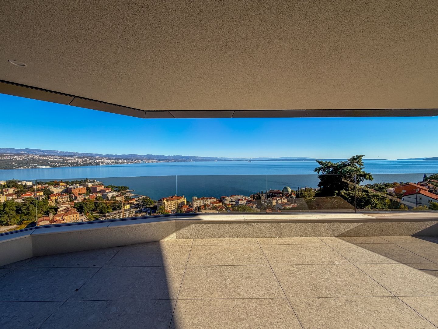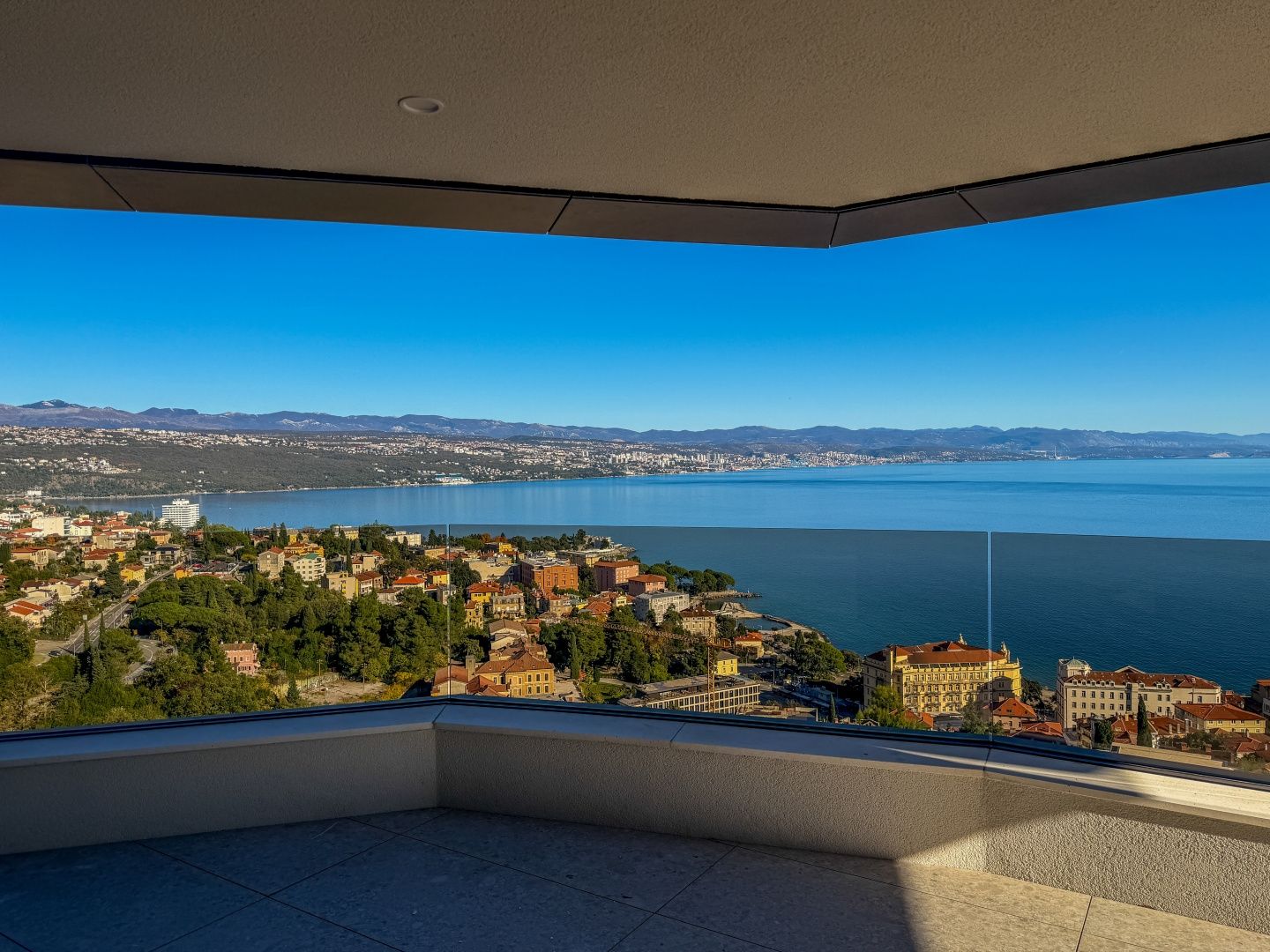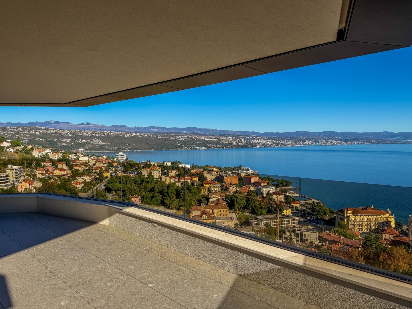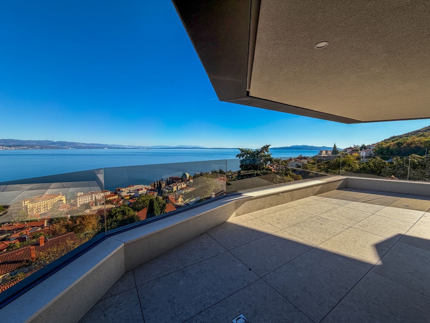 OPATIJA, ZENTRUM – Luxus-Penthouse in einem Neubau mit Wellnessbereich, Fitnessstudio und Garage Exklusive Gelegenheit bei Dux Real Estate: Penthouse mit 143 m² Wohnfläche, davon 21 m² überdachte und 4 m² offene Terrasse. Die Terrasse bietet einen traumhaften Meerblick. Das Penthouse besteht aus: Eingangsbereich, Flur, Wohnzimmer mit Küche, 2 Schlafzimmern, 2 Badezimmern und einem Abstellraum. Die Terrasse ist sowohl von den Schlafzimmern als auch vom Wohnzimmer aus zugänglich. Zur Wohnung gehören 2 Parkplätze, die auf Anfrage zusätzlich angemietet werden können. Es besteht die Möglichkeit, weitere Parkplätze zu erwerben. Die Wohnung verfügt außerdem über einen Abstellraum und einen Außenstellplatz. Dieses moderne Neubaugebäude bietet erstklassige Bauqualität und Ausstattung: - Luftrückgewinnung mit Pollen- und Allergenfilter - Fußbodenheizung in allen Räumen und energieeffiziente Heizung über Wärmepumpen - Fenster und Türen aus braunem Aluminium mit dreifach verglastem IZO-Glas - Smart-Home-System mit Zugangskontrolle (ABB Free@home) - Sanitäreinrichtungen von Hansgrohe, Eichenparkett und Sicherheitstüren - elektrische Aluminium-Jalousien, LED-Beleuchtung und Videoüberwachung der Gemeinschaftsbereiche - gemeinschaftlicher Fitness- und Wellnessbereich - 260 cm Deckenhöhe und ein leiser OTIS-Aufzug mit luxuriöser Kabine Eine perfekte Gelegenheit, eine Luxuswohnung im Herzen von Opatija zu erwerben – in einem Neubau, der Komfort, Technologie und eleganten mediterranen Stil mit einem atemberaubenden Ausblick vereint. Für eine Besichtigung kontaktieren Sie bitte einen unserer vertrauenswürdigen Makler – Beratung auf Deutsch möglich.