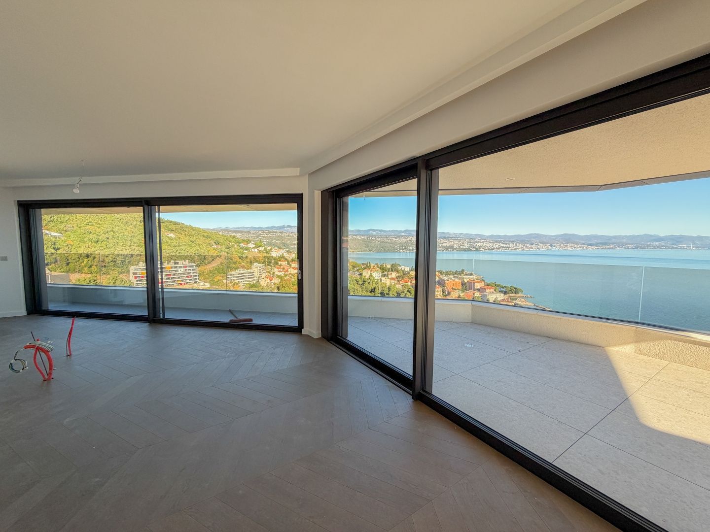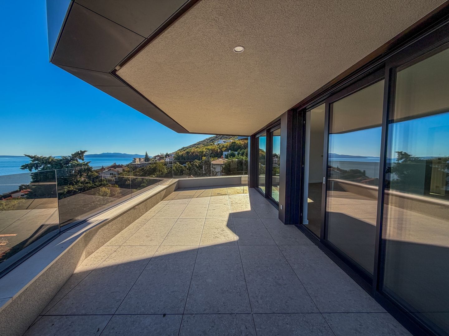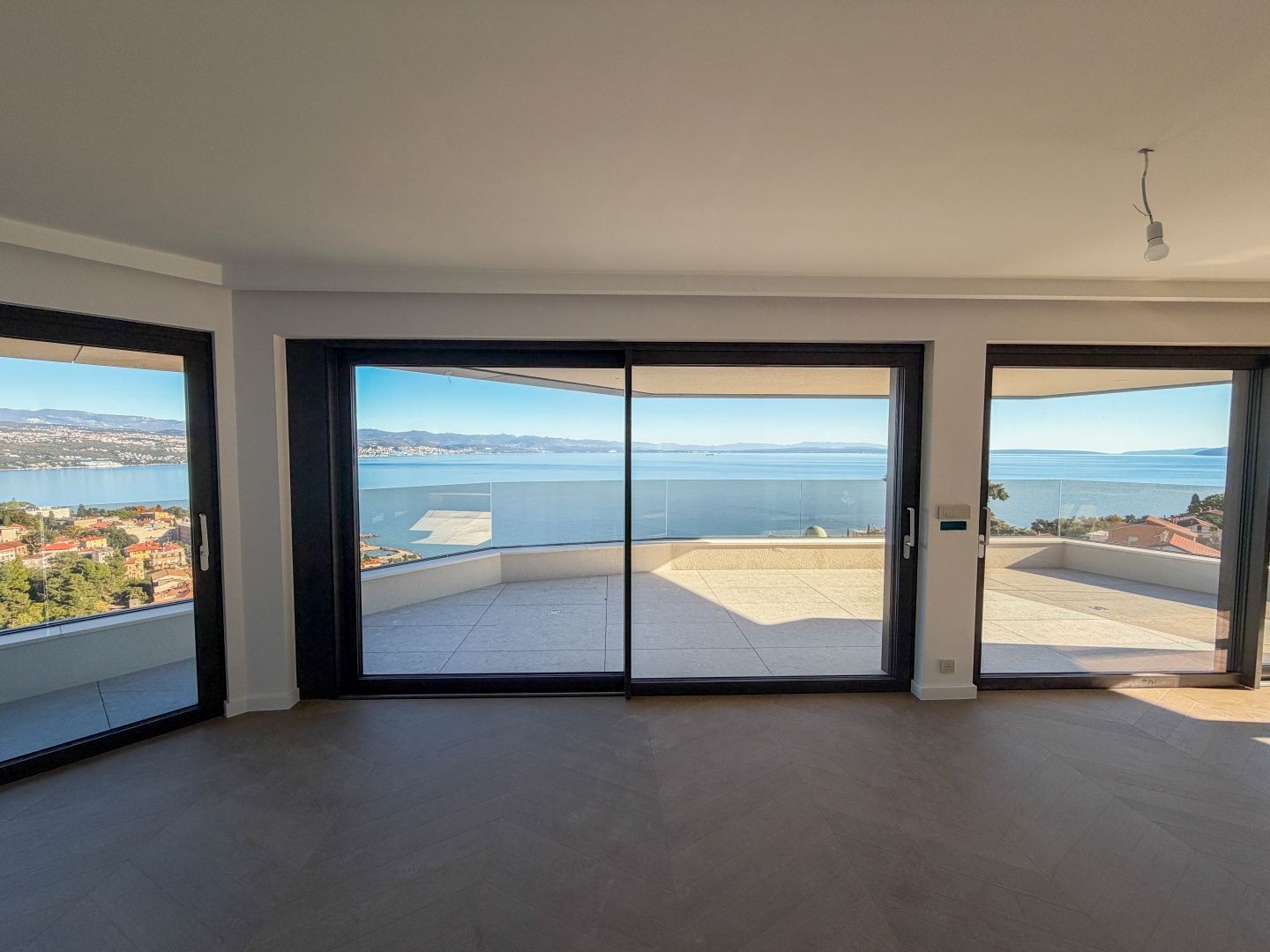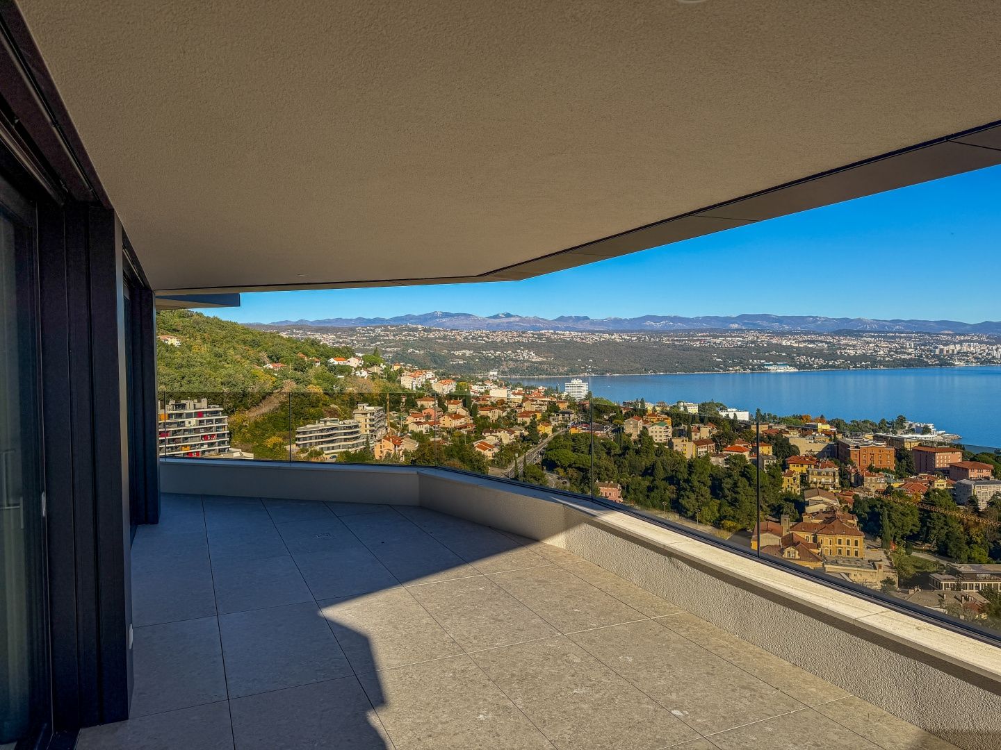 OPATIJA, ZENTRUM – Luxus-Penthouse in einem Neubau mit Wellnessbereich, Fitnessstudio und Garage Exklusive Gelegenheit bei Dux Real Estate: Penthouse mit 143 m² Wohnfläche, davon 21 m² überdachte und 4 m² offene Terrasse. Die Terrasse bietet einen traumhaften Meerblick. Das Penthouse besteht aus: Eingangsbereich, Flur, Wohnzimmer mit Küche, 2 Schlafzimmern, 2 Badezimmern und einem Abstellraum. Die Terrasse ist sowohl von den Schlafzimmern als auch vom Wohnzimmer aus zugänglich. Zur Wohnung gehören 2 Parkplätze, die auf Anfrage zusätzlich angemietet werden können. Es besteht die Möglichkeit, weitere Parkplätze zu erwerben. Die Wohnung verfügt außerdem über einen Abstellraum und einen Außenstellplatz. Dieses moderne Neubaugebäude bietet erstklassige Bauqualität und Ausstattung: - Luftrückgewinnung mit Pollen- und Allergenfilter - Fußbodenheizung in allen Räumen und energieeffiziente Heizung über Wärmepumpen - Fenster und Türen aus braunem Aluminium mit dreifach verglastem IZO-Glas - Smart-Home-System mit Zugangskontrolle (ABB Free@home) - Sanitäreinrichtungen von Hansgrohe, Eichenparkett und Sicherheitstüren - elektrische Aluminium-Jalousien, LED-Beleuchtung und Videoüberwachung der Gemeinschaftsbereiche - gemeinschaftlicher Fitness- und Wellnessbereich - 260 cm Deckenhöhe und ein leiser OTIS-Aufzug mit luxuriöser Kabine Eine perfekte Gelegenheit, eine Luxuswohnung im Herzen von Opatija zu erwerben – in einem Neubau, der Komfort, Technologie und eleganten mediterranen Stil mit einem atemberaubenden Ausblick vereint. Für eine Besichtigung kontaktieren Sie bitte einen unserer vertrauenswürdigen Makler – Beratung auf Deutsch möglich.