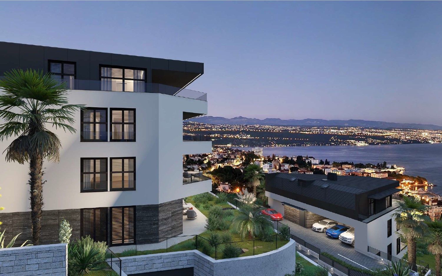 OPATIJA, ZENTRUM – Neubauwohnung in Opatija mit Garage, privatem Garten und hochwertiger Ausstattung Exklusive Gelegenheit bei Dux Real Estate: Wohnung A1 mit 123 m² Wohnfläche zu verkaufen. Davon entfallen 11 m² auf eine überdachte Terrasse, 7 m² auf eine nicht überdachte Terrasse und 9 m² auf einen Garten. Die Wohnung besteht aus: Eingangsbereich, Flur, Wohnzimmer mit Küche, 2 Schlafzimmern, 2 Badezimmern und einem separaten WC. Vom Wohnzimmer und der Küche gelangt man auf eine großzügige Terrasse und in den Garten. Zur Wohnung gehören 2 Parkplätze, die auf Anfrage zusätzlich berechnet werden können. Es besteht die Möglichkeit, weitere Parkplätze zu erwerben. Eine perfekte Gelegenheit, eine Wohnung in Opatija zu kaufen, insbesondere eine so luxuriöse Wohnung in einem Neubau mit herrlichem Meerblick.
