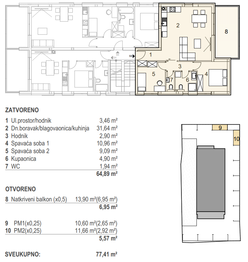 INSEL PAG, MANDRE – Moderner Neubau mit Meerblick, 80 Meter vom Strand entfernt! S6 Attraktive Wohnung S6 in einem Neubau in Mandre, nur 80 Meter vom schönen Strand entfernt, zum Verkauf. Das Gebäude umfasst insgesamt acht moderne Wohnungen, die mit Wert auf Qualität, Komfort und zeitgemäßen Lebensstil gebaut wurden. Die Wohnung S6 befindet sich im ersten Stock und verfügt über zwei Schlafzimmer, ein Badezimmer mit Fußbodenheizung, ein zusätzliches WC, ein geräumiges Wohnzimmer mit Küche und Essbereich sowie eine überdachte Terrasse mit Meerblick, ideal zum Entspannen an lauen Sommerabenden. Zur Wohnung gehören außerdem zwei Parkplätze. Dieser Neubau vereint modernes Design und mediterranen Charme perfekt – ideal für einen Urlaub, aber auch als Investition zur Vermietung während der Saison. Mandre ist ein malerisches Fischerdorf auf der Insel Pag, bekannt für sein klares Meer, seine gepflegten Strände und seine ruhige Atmosphäre. Die Insel Pag begeistert mit ihrer einzigartigen Natur, ihrem reichhaltigen gastronomischen Angebot, Pager Käse und Wein sowie dem authentischen dalmatinischen Flair. Für weitere Informationen und Besichtigungen dieser Immobilie kontaktieren Sie uns gerne – Ihr neues Zuhause am Meer erwartet Sie in Mandre! Liebe Kunden, die Vermittlungsprovision wird gemäß den Allgemeinen Geschäftsbedingungen berechnet: www.dux-nekretnine.hr/opci-uvjeti-poslovanja