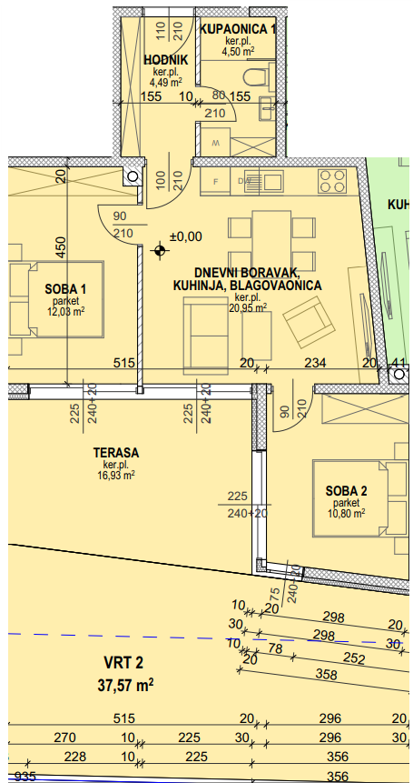 PAG, POVLJANA – GELEGENHEIT! Neubau, nur 200 m vom Strand entfernt! S2 Wohnung mit großzügigem Garten zu verkaufen. Die Wohnung besteht aus zwei Schlafzimmern, einer Wohnküche, einem Badezimmer, einer Terrasse und einem Parkplatz. Das Gebäude umfasst zehn (10) Wohneinheiten und ist über den Außenbereich an der Nordostfassade zugänglich. Die Wohnung ist nach Süden ausgerichtet. Das gesamte Gebäude ist mit hochwertigen Materialien und exzellenter Schall- und Wärmedämmung errichtet. Heizung, Kühlung und Warmwasserbereitung erfolgen über Wärmepumpen. Die Wohnung ist mit hochwertigen Keramikfliesen und Parkettböden ausgestattet. Alle Innentüren sind aus Holz und verfügen über rahmenlose Türrahmen. In allen Räumen ist der Einbau von PVC-Fenstern mit 4 mm dicken Doppelglas-Wärmedämmungen geplant. Das Gebäude wird mit einer Sicherheits- und Panikbeleuchtung mit batteriebetriebenen Lampen ausgestattet, die nach Stromausfall bis zu drei Stunden lang funktionieren. Die Anlage befindet sich im Bau und bietet zehn Wohnungen. Der Investor ist ein zuverlässiges Unternehmen mit langjähriger Erfahrung im Bauwesen. Für weitere Informationen und zur Vereinbarung eines Besichtigungstermins kontaktieren Sie uns bitte.