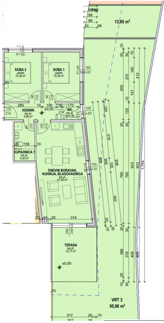 PAG, POVLJANA – GELEGENHEIT! Neubau, nur 200 m vom Strand entfernt! S3 Wohnung mit großzügigem Garten zu verkaufen. Die Wohnung besteht aus zwei Schlafzimmern, Wohnküche, Bad, WC, Terrasse und einem Parkplatz. Das Gebäude umfasst zehn (10) Wohneinheiten und ist über den Außenbereich an der Nordostfassade zugänglich. Die Wohnung ist nach Südosten ausgerichtet. Das gesamte Gebäude ist mit hochwertigen Materialien und exzellenter Schall- und Wärmedämmung errichtet. Heizung, Kühlung und Warmwasserbereitung erfolgen über Wärmepumpen. Die Wohnung ist mit hochwertigen Keramikfliesen und Parkettböden ausgestattet. Alle Innentüren sind aus Holz und haben rahmenlose Türrahmen. In allen Räumen ist der Einbau von PVC-Fenstern mit 4 mm dicken Doppelglas-Wärmedämmungen geplant. Das Gebäude wird mit einer Sicherheits- und Panikbeleuchtung mit batteriebetriebenen Lampen ausgestattet, die nach einem Stromausfall bis zu drei Stunden lang funktionieren. Die Anlage befindet sich im Bau und bietet 10 Wohnungen. Der Investor ist ein zuverlässiges Unternehmen mit langjähriger Erfahrung im Bauwesen. Für weitere Informationen und zur Vereinbarung eines Besichtigungstermins kontaktieren Sie uns bitte.