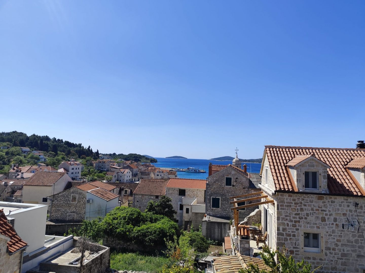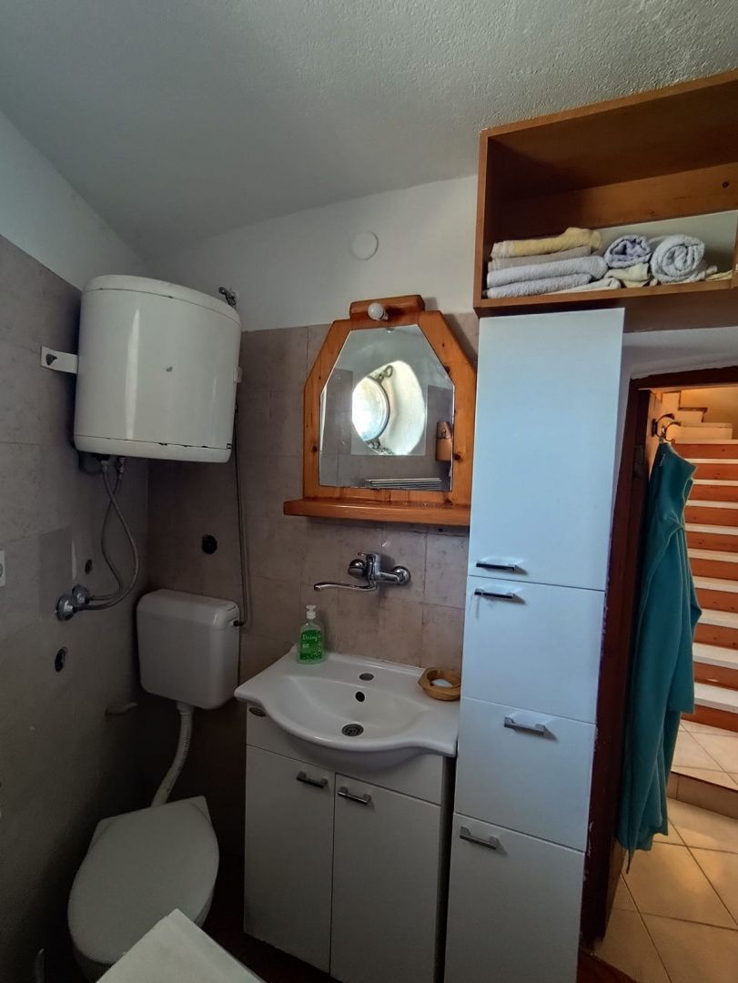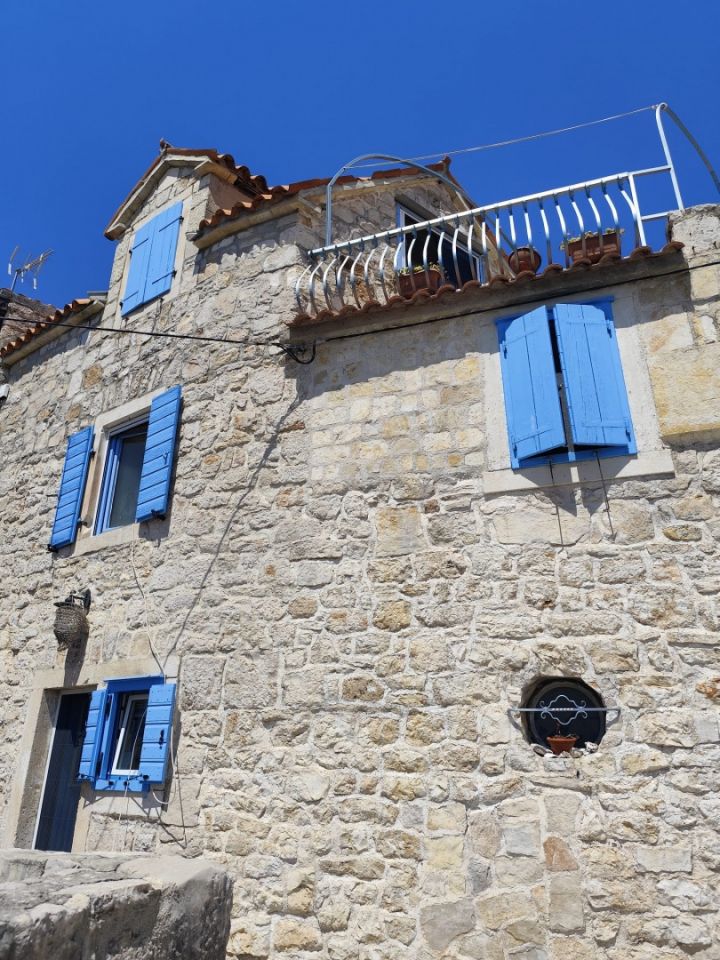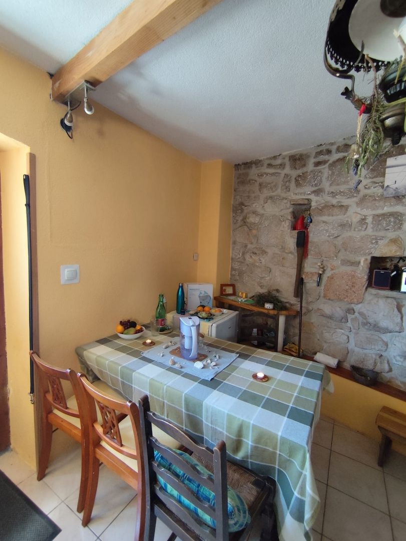 PRVIĆ ŠEPURINE – Steinhaus mit Terrasse und Meerblick Prvić Šepurine ist ein ruhiger Inselort auf der Insel Prvić, bekannt für seine gut erhaltene dalmatinische Architektur, das kristallklare Meer und den authentischen autofreien Lebensstil. Die gepflegten Kopfsteinpflasterstraßen, die Nähe zum Meer und die entspannte Atmosphäre machen diesen Ort ideal für einen Urlaub, aber auch für einen ganzjährigen Aufenthalt. Die Insel ist durch regelmäßige Schiffsverbindungen mit Vodice und Šibenik verbunden. Im historischen Stadtkern befindet sich ein dreistöckiges Steinhaus mit ca. 80 m² Wohnfläche. Im Erdgeschoss befinden sich eine Küche mit Essbereich und ein Badezimmer. Im ersten Stock befinden sich ein Hauptschlafzimmer und ein weiteres kleineres Zimmer. Im Dachgeschoss befindet sich ein zusätzlicher Raum, der Schlaf- und Wohnbereich kombiniert und Zugang zu einer Terrasse mit freiem Blick auf das Meer und die Umgebung bietet. Das Haus wurde im traditionellen dalmatinischen Stil erbaut, mit etwa 60 cm dicken Steinmauern, die ganzjährig für ein angenehmes Raumklima sorgen. In den oberen Stockwerken befinden sich Holzbalken und ein Dielenboden, während im Erdgeschoss ein Kaminofen für eine behagliche Atmosphäre sorgt. Die Terrasse ist ein besonderes Highlight des Anwesens und bietet Raum zum Entspannen und Genießen inmitten mediterraner Natur. Das Anwesen eignet sich ideal zur touristischen Vermietung, aber auch als Ihre eigene Oase der Ruhe auf der Insel.