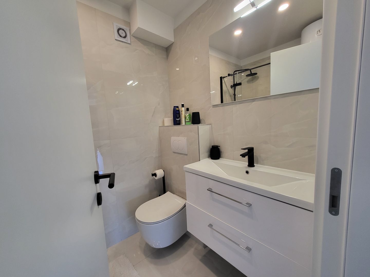 RIJEKA, BELVEDER – 1-Zimmer-Wohnung mit Bad als Kapitalanlage oder zum Selbstbezug Komfortable und frisch renovierte 1-Zimmer-Wohnung mit 58 m² Wohnfläche in Belveder. Die Wohnung besteht aus einem Flur, einem großzügigen offenen Wohn-, Ess- und Küchenbereich, zwei Balkonen (einer davon mit herrlichem Meerblick), Schlafzimmer, Bad und Abstellraum. Die Wohnung ist komplett renoviert, neu möbliert und wird im aktuellen Zustand verkauft. Sie befindet sich im Obergeschoss eines gepflegten Wohnhauses mit zwei Aufzügen in bester Lage nahe dem Stadtzentrum und allen wichtigen Einrichtungen. Mit geringfügigen Anpassungen kann die Wohnung wieder in die ursprüngliche Aufteilung als 2-Zimmer-Wohnung mit Wohnzimmer zurückversetzt werden. Ein öffentlicher Parkplatz befindet sich in unmittelbarer Nähe des Gebäudes. Ideal für Familien, aber auch als Kapitalanlage. Alle erforderlichen Dokumente sind vorhanden.
