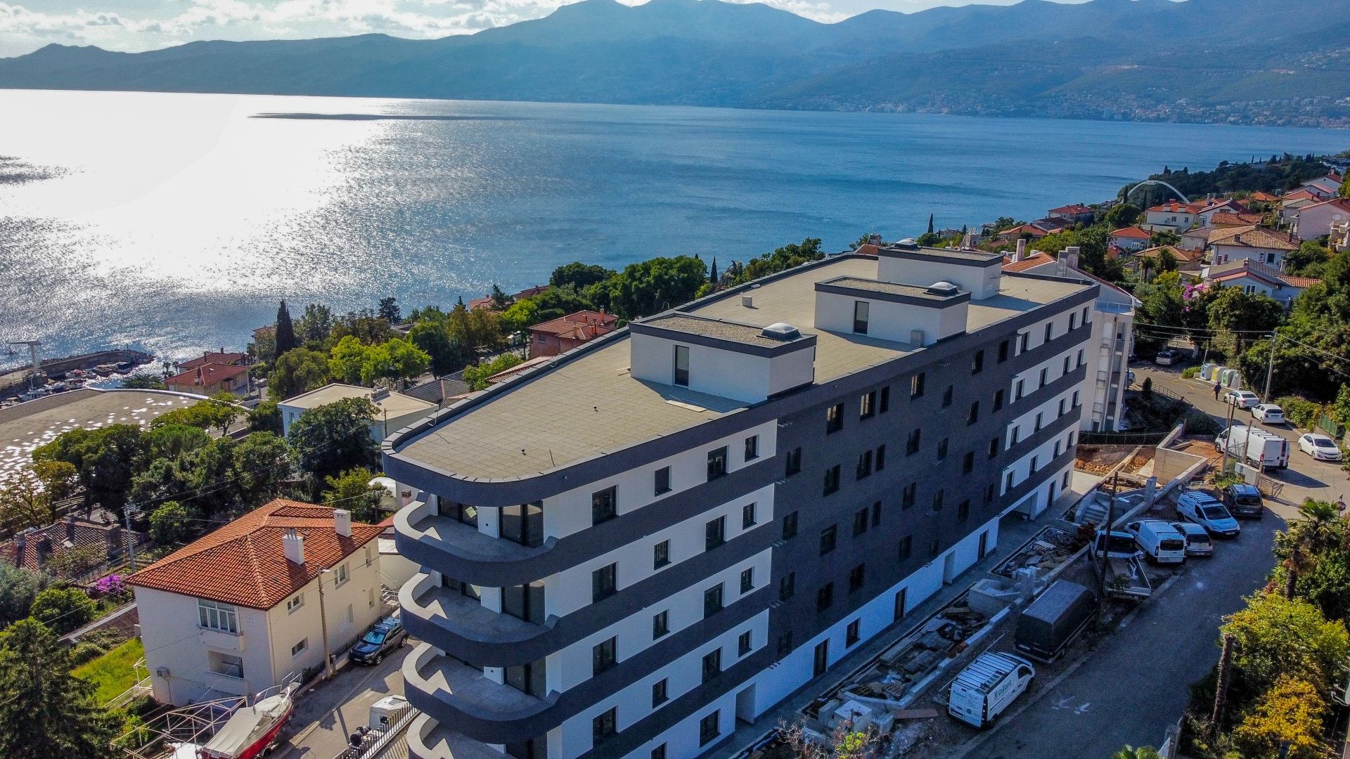 RIJEKA, KANTRIDA – 107 m² große Wohnung in einem luxuriösen Neubau, nur 250 Meter vom Meer entfernt, mit Garage und Panoramablick auf das Meer