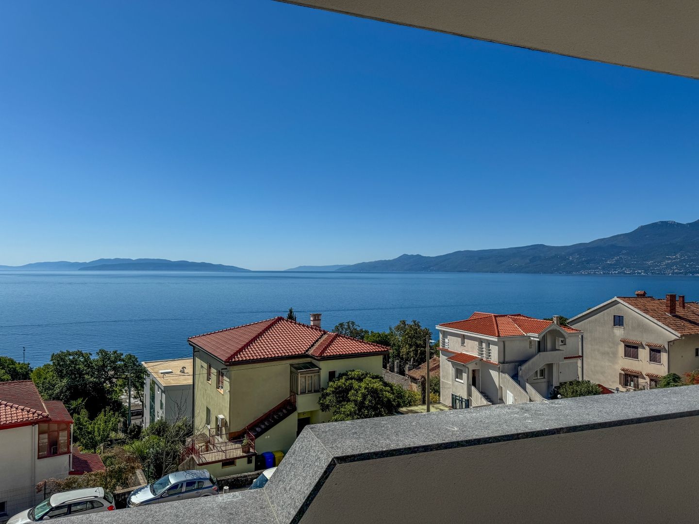 RIJEKA, KANTRIDA – 82 m² große Wohnung in einem luxuriösen Neubau, nur 250 Meter vom Meer entfernt, mit Garage und Panoramablick auf das Meer DUX präsentiert exklusiv ein besonderes Neubauprojekt zwischen der Stadt Rijeka und dem schönen Opatija. Das hochwertige Gebäude befindet sich im Wohnviertel Kantrida, einem der begehrtesten und hochwertigsten Standorte in der Kvarner Bucht. Das Gebäude mit insgesamt 29 exklusiven Wohnungen liegt in einer verkehrsberuhigten Sackgasse, mit vollständig bebauten Nachbargrundstücken. Dies garantiert einen sicheren Meerblick sowie ein hochwertiges und ruhiges Wohnumfeld. Besonders hervorzuheben ist, dass jede Wohnung – sogar im Erdgeschoss – über einen Panoramablick auf das Meer verfügt. Das Gebäude bietet zwei Tiefgaragenetagen mit insgesamt 68 Parkplätzen sowie zugehörigen Abstellräumen für jede Wohnung. Die Wohnung **S27**, 82 m², befindet sich im 4. Stock und besteht aus zwei Schlafzimmern, zwei komfortablen Badezimmern, einer Küche, einem Esszimmer und einem Wohnzimmer. Die Wohnung ist mit einer schönen, überdachten Terrasse verbunden, von der aus Sie einen echten Panoramablick auf das Meer genießen können. Die Bruttofläche beträgt 94 m². Die Nutzfläche beträgt 79 m², während die Nettofläche inklusive Koeffizienten (Terrasse, Garage und Abstellraum) 82 m² umfasst. **Vorteile und Besonderheiten der Gebäudeausstattung:** * Jedes Wohnzimmer ist nach Süden ausgerichtet * 3 Hauseingänge, die Privatsphäre und eine kleine Nachbarschaftsgemeinschaft ermöglichen * Bequeme Parkplätze in der Tiefgarage * Aufzug * Sicherheitstüren * Fußbodenheizung in der gesamten Wohnung (Wärmepumpe) * Raumhöhe 280 cm * Aluminiumfenster mit großen, nach Süden ausgerichteten Schiebewänden + elektrische Rollläden * Österreichisches Parkett * Hochwertige Keramik und Sanitäranlagen * Schalldämmung in den Wänden Zur Wohnung gehören ein bequemer Tiefgaragenstellplatz sowie ein privater Abstellraum. Die Mikrolage ist ausgezeichnet: Nur 250 Meter vom Meer entfernt, erreichbar in 4 Gehminuten. In unmittelbarer Nähe befinden sich Geschäfte, Schulen, ein Fußballplatz, eine Sporthalle, Strände, das städtische Schwimmbad für Schwimmer und Wasserballspieler sowie Restaurants. Die ideale Lage wird zusätzlich durch die Nähe zum Stadtzentrum von Rijeka (10 Minuten Fahrt) und zu Opatija (12 Minuten Fahrt) unterstrichen. Nutzen Sie diese Gelegenheit, eine hochwertige Neubauwohnung in Kvarner mit traumhaftem Panoramablick auf das Meer zu erwerben. Für eine Besichtigung kontaktieren Sie bitte vertrauensvoll den zuständigen Makler – eine Beratung auf Deutsch ist möglich.