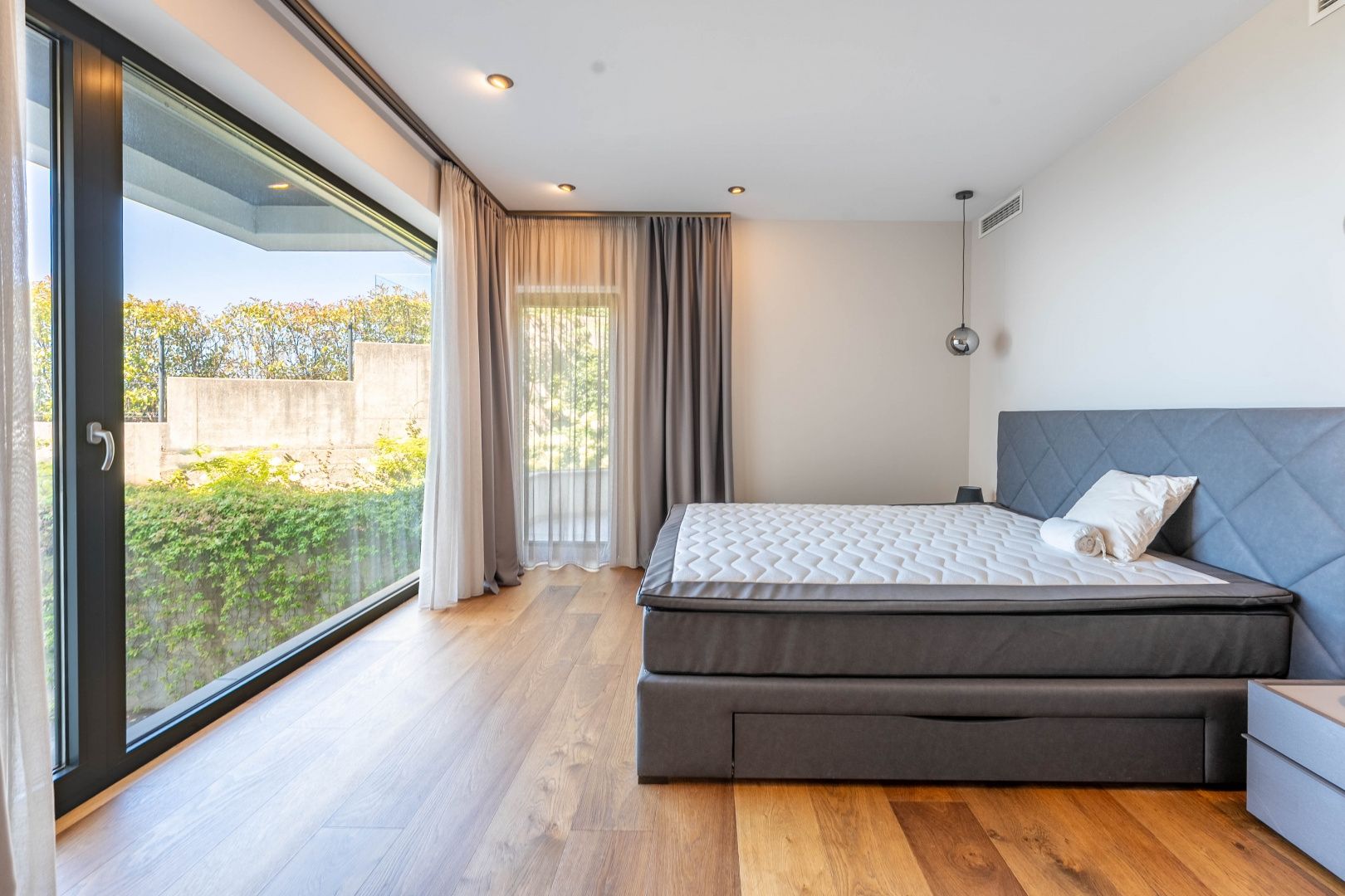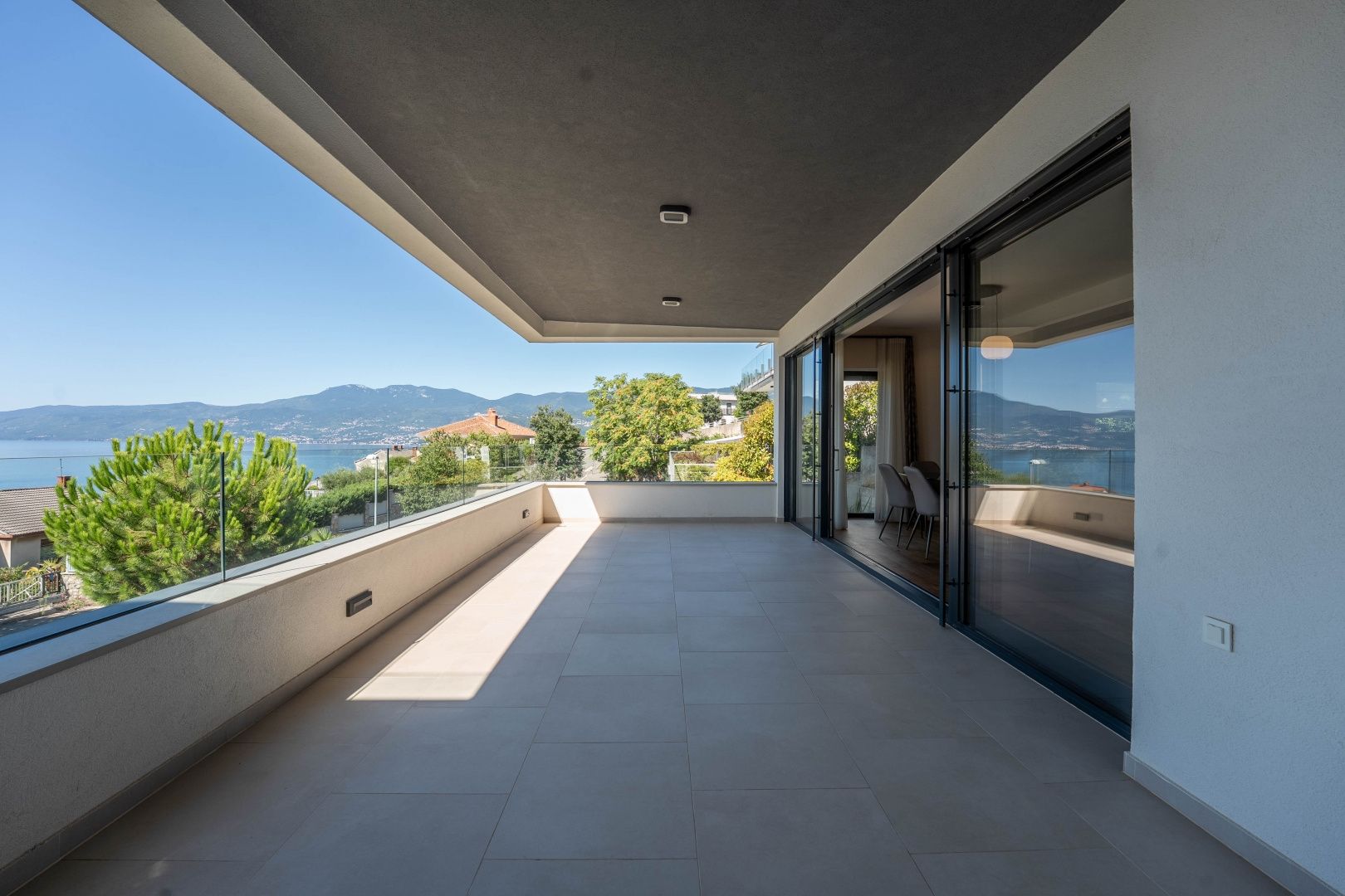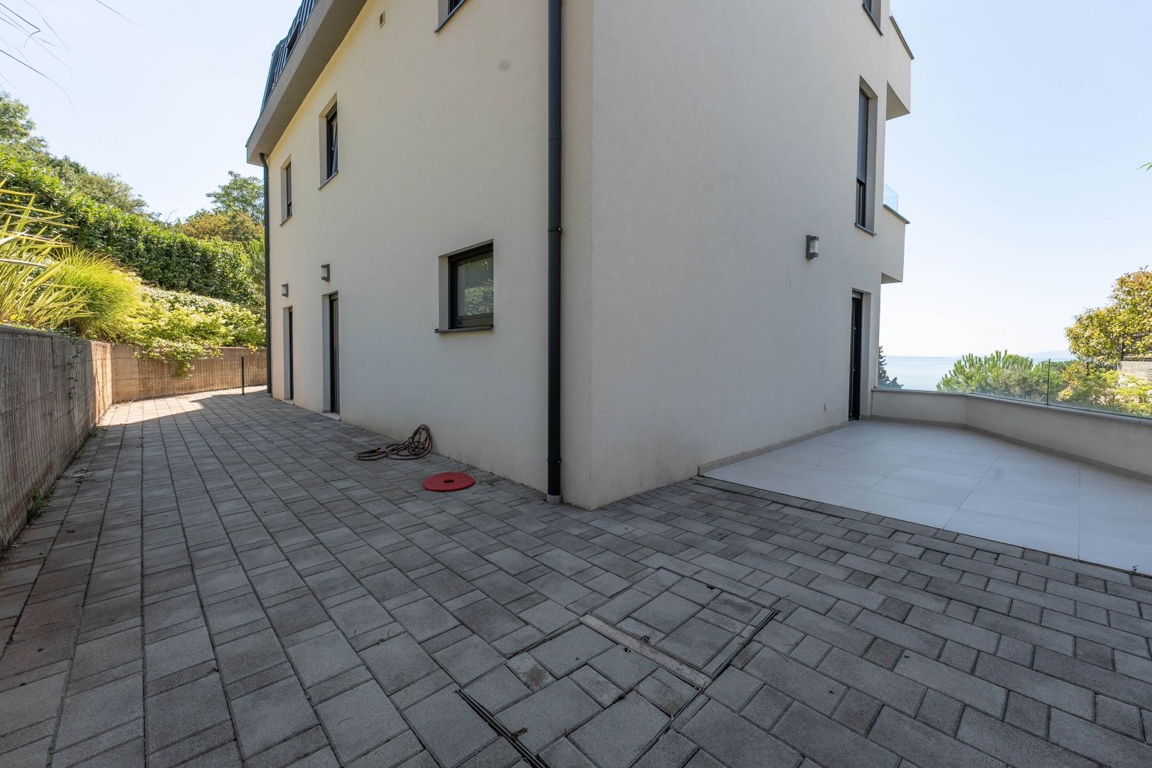 RIJEKA, KANTRIDA – Luxusetage in einem Neubau, Panoramablick aufs Meer, exklusiv möblierte Wohnung mit Terrasse Im DUX-Angebot präsentieren wir Ihnen eine hervorragende Gelegenheit zur Langzeitmiete. Es handelt sich um eine luxuriöse Etage in einem hochwertigen Neubau in begehrter Lage von Rijeka und Opatija – Marčeljeva Draga. Das kleinere Gebäude verfügt über drei großzügige Wohnungen mit gemeinsamem Eingang, Garten, überdachtem Parkplatz und Aufzug. Die 160 m² große Wohnung im ersten Stock bietet drei geräumige Schlafzimmer und drei modern ausgestattete Badezimmer. Zur Wohnung gehören ein 60 m² großer Privatgarten, eine 25 m² große Terrasse und zwei Parkplätze. Ein eigener Wellnessbereich mit Dusche, Whirlpool und finnischer Sauna lädt zum Entspannen ein. Wohnung und Terrassen bieten einen atemberaubenden Meerblick und vereinen Luxus und Komfort auf perfekte Weise. Besonders hervorzuheben sind die offene Raumgestaltung, die großen Schiebewände in den Zimmern und im Wohnzimmer sowie der atemberaubende, unvergleichliche Meerblick. Dieses Haus besticht durch folgende Ausstattungsmerkmale: - Fußbodenheizung und Wärmepumpe - Deckenventilator (nicht raumhoch) - Aluminiumfenster und -türen - Sauna und Whirlpool im Badezimmer - Designermöbel (unbenutzt) - Aufzug - Überdachter Parkplatz Die Immobilie befindet sich im Besitz eines Unternehmens und die Mehrwertsteuer ist im Mietpreis enthalten. Sie wird mit neuen Möbeln wie abgebildet vermietet. Der Mieter muss eine juristische Person oder ein umsatzsteuerpflichtiges Unternehmen sein. Die Miete beträgt 3.000 € zzgl. MwSt. und Nebenkosten. Die Mindestmietdauer beträgt zwei Jahre. Die Lage ist ideal: Das Haus liegt in einer ruhigen Sackgasse, die ausschließlich den Anwohnern vorbehalten ist. Vor dem Gebäude bietet sich ein unverbaubarer Blick durch bewohnte Häuser und Bäume – ein Ausblick, der für immer erhalten bleibt. Das nächste Geschäft ist fußläufig auf ebener Strecke erreichbar, und das Meer ist in weniger als 10 Minuten über einen leichten Abstieg zu erreichen. Diese Lage ist bei vielen Menschen aus Rijeka und Opatija sehr begehrt. Um eine Besichtigung zu vereinbaren, wenden Sie sich bitte an einen vertrauenswürdigen Makler – eine Beratung auf Deutsch ist möglich.