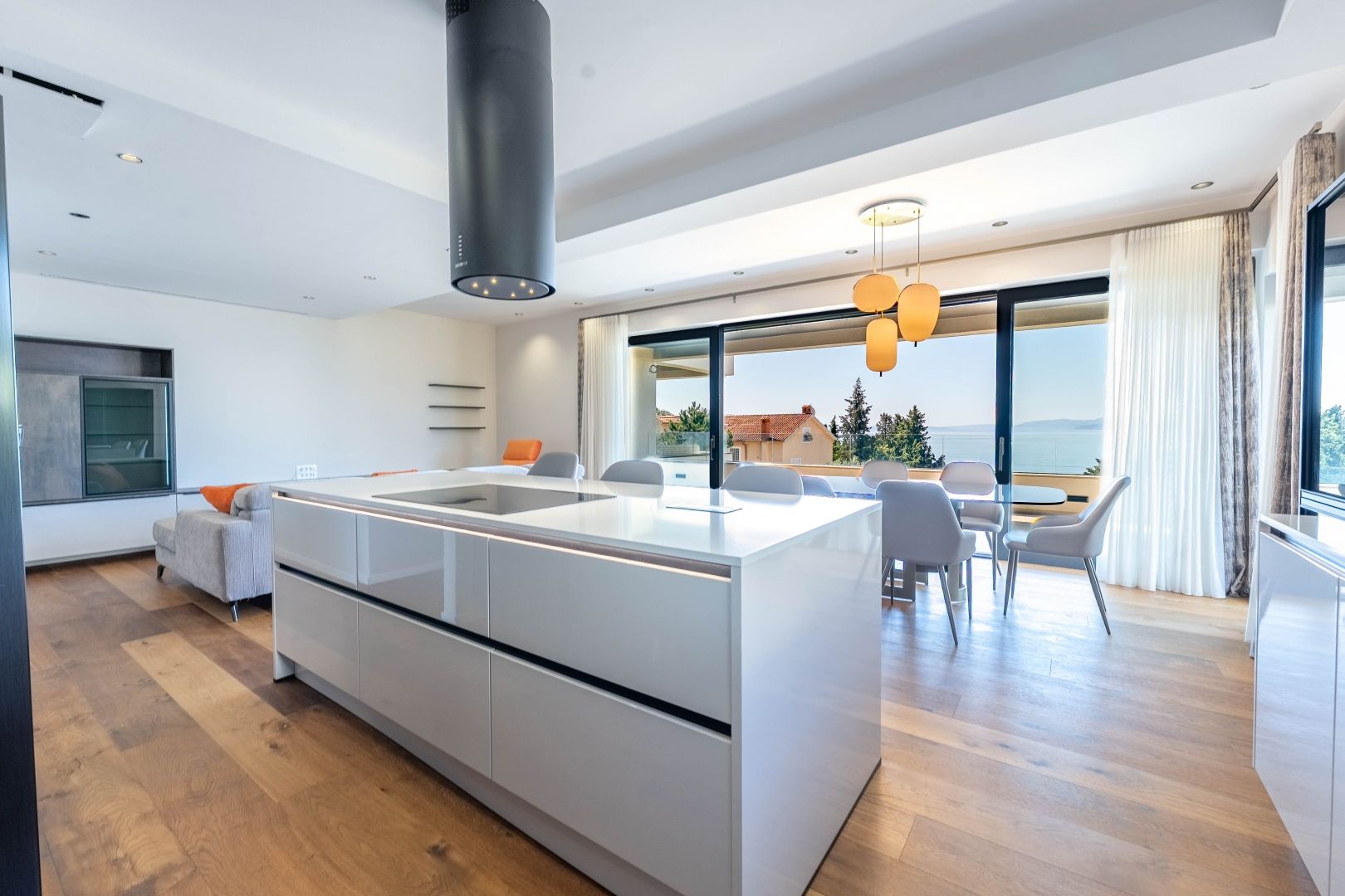 RIJEKA, KANTRIDA – Luxusetage in einem Neubau, Panoramablick aufs Meer, individuell möblierte Wohnung mit Terrasse