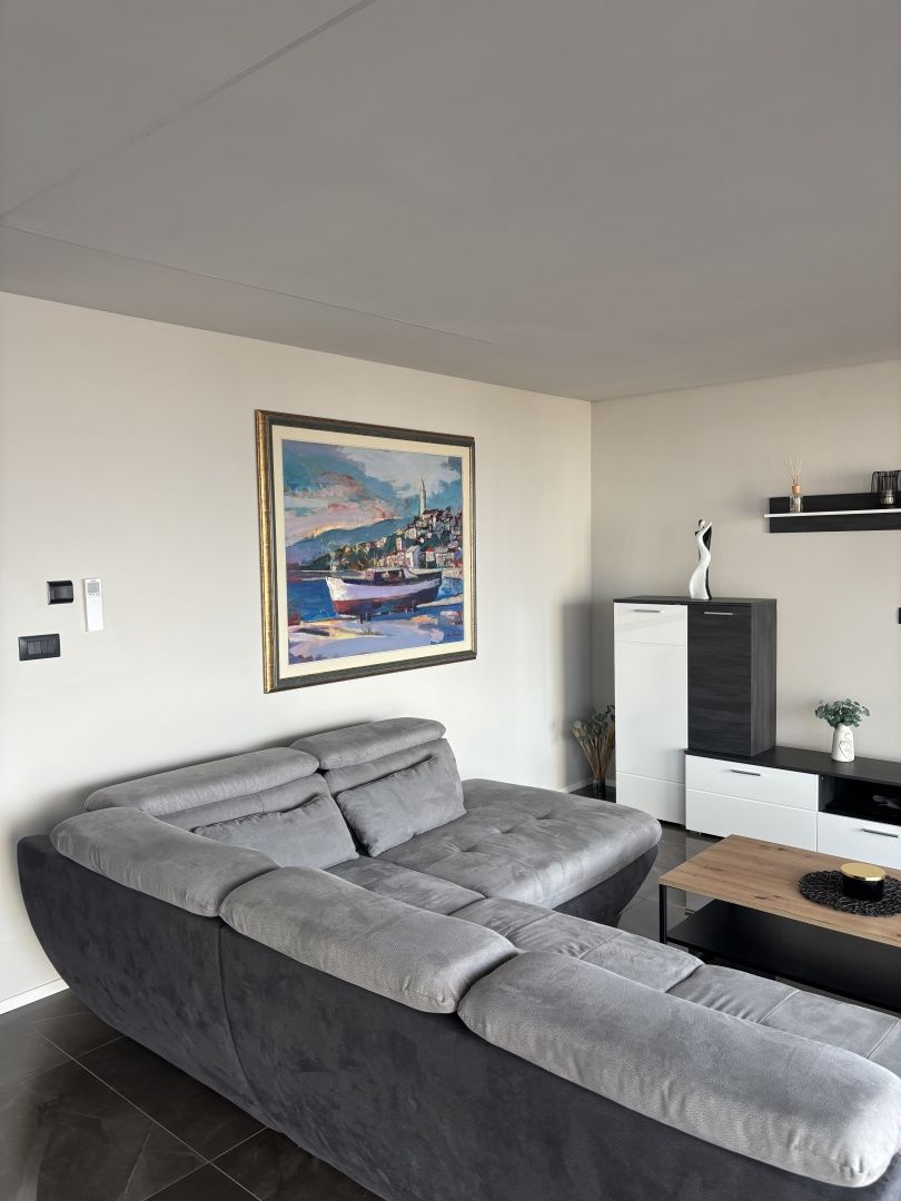 RIJEKA, KRIMEA – Luxusapartment mit Meerblick zu vermieten Suchen Sie ein modern eingerichtetes Apartment mit funktionalem Grundriss, das Komfort und Luxus zugleich bietet und einen traumhaften Meerblick hat? Dann ist dies die ideale Immobilie für Sie. Das Apartment befindet sich im Osten von Rijeka, in Krimeja, nur 2 km vom Korzo entfernt. Es liegt im 2. Stock eines modernen Wohnhauses mit privatem Innenhof und eigenem Parkplatz. Das 118 m² große Apartment besteht aus einem Eingangsbereich, einer offenen Küche mit Essbereich und Wohnzimmer, zwei Schlafzimmern, zwei Badezimmern mit Dusche, zwei Balkonen (Süd- und Nordseite) und einer Loggia. Das Highlight des Apartments ist die Loggia mit einer großen Glaswand, die in ein Schlafzimmer umgewandelt wurde und einen atemberaubenden Meerblick bietet. Die Wohnung bietet dank Glaswänden mit Aluminium-Rollläden und elektrischen Fensterläden ein besonders intimes Ambiente. Sie wird komplett möbliert vermietet und ist sofort bezugsfertig. Fußbodenheizung und Klimaanlage in den Räumen sind ebenfalls vorhanden. Die Immobilie bietet modernes Wohnen und befindet sich in unmittelbarer Nähe aller wichtigen Einrichtungen. Für weitere Informationen rufen Sie uns bitte an.