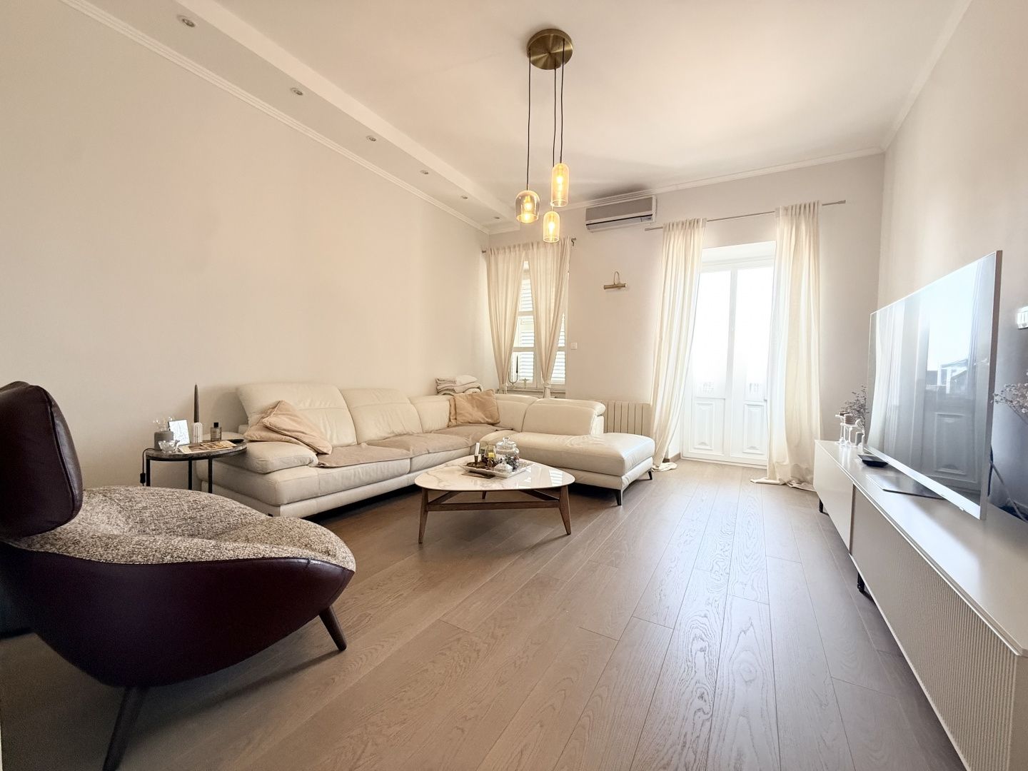 RIJEKA, PEĆINE – Frisch renovierte 5-Zimmer-Wohnung mit Balkon und Meerblick In Pećine, einer der begehrtesten Lagen Rijekas, steht eine komplett renovierte und voll ausgestattete Wohnung zum Verkauf. Die 130 m² große Wohnung liegt nur fünf Gehminuten vom Meer und zehn Gehminuten vom Korzo entfernt und bietet somit eine äußerst seltene Kombination aus Strandnähe und zentraler Lage. Die Wohnung verfügt über eine geräumige Wohnküche, ein Wohnzimmer, einen Flur, vier große Schlafzimmer, begehbare Kleiderschränke, einen zusätzlichen Schuhschrank, ein Badezimmer, einen Abstellraum und einen Holzschuppen. Der Balkon mit freiem Meerblick ist ein besonderes Highlight. Die Immobilie wurde komplett renoviert und mit einer Gaszentralheizung, drei Klimaanlagen und einer hochwertigen Nolte-Küche ausgestattet, die für hohen Komfort und optimale Funktionalität sorgt. Dank ihrer außergewöhnlichen Lage, Größe und der Nähe zum Meer eignet sich die Wohnung ideal für Familien, aber auch als langfristige Kapitalanlage.