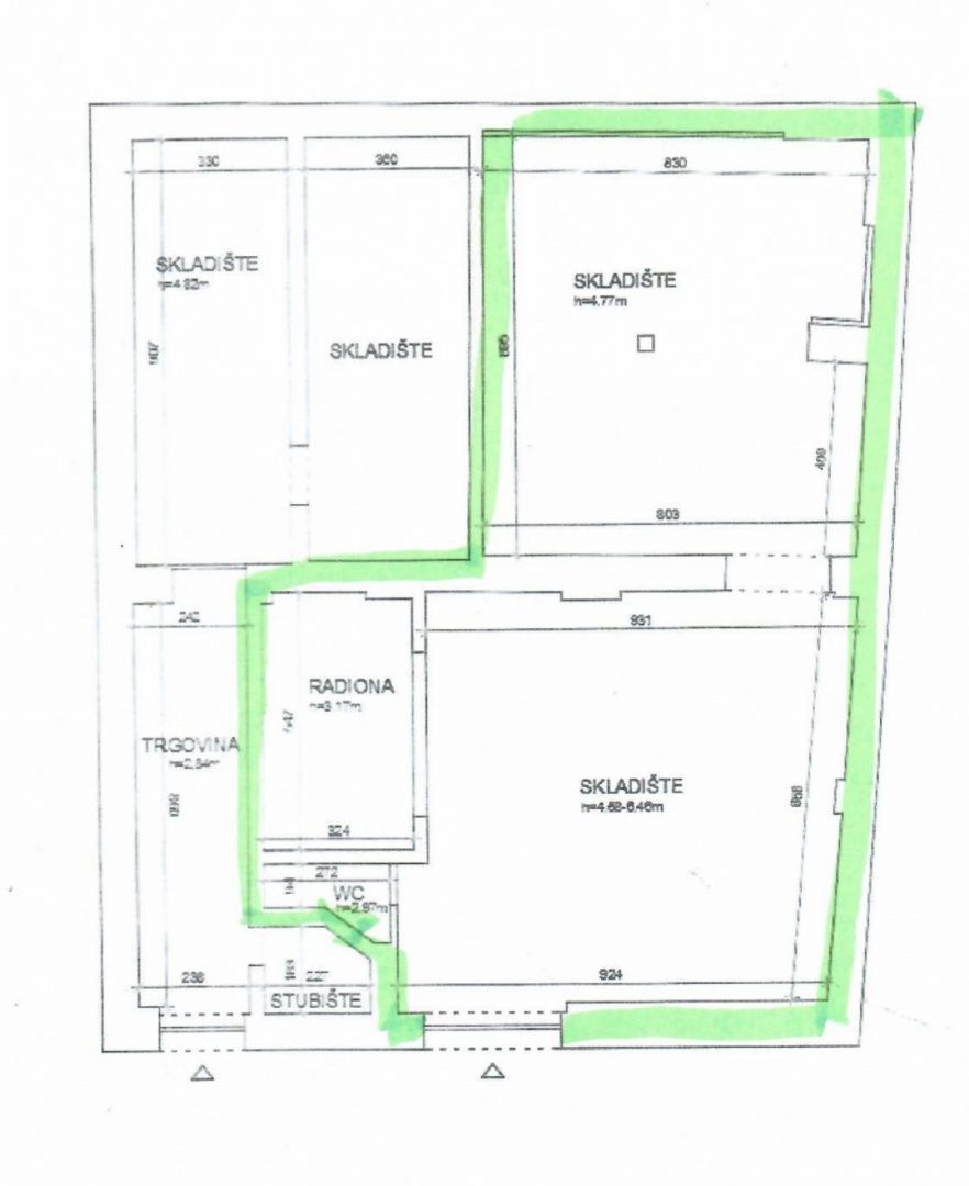 RIJEKA, ZENTRUM – Gewerbefläche 174 m², Lager im Erdgeschoss und Parkplatz! Das Angebot umfasst eine Gewerbefläche mit Lager im Erdgeschoss des Gebäudes. Dank direktem Zugang und einem Parkplatz direkt vor dem Gebäude ist die Warenannahme unkompliziert und der Arbeitsablauf reibungslos. Die Fläche verfügt über eine garantierte elektrische Leistung von 13,80 kW. Die 174 m² große Fläche ist als offener Raum (zwei Zimmer), ein abgeschlossenes Büro und eine Toilette gestaltet und bietet somit ein optimales Verhältnis zwischen Arbeits- und Verwaltungsbereich. Ein besonderer Vorteil ist die Raumhöhe von bis zu 7 Metern, die vielfältige Möglichkeiten zur Lagerorganisation, zum Aufbau einer Galerie oder zur Anpassung an unterschiedliche Geschäftsbedürfnisse eröffnet. Die Fläche wird in einem ordentlichen und neutralen Zustand übergeben und kann an die Bedürfnisse des zukünftigen Nutzers angepasst werden. Aufgrund ihres Konzepts und ihrer Lage eignet sie sich ideal für Lager, Logistik, Dienstleistungsunternehmen und ähnliche Branchen, die funktionale Erdgeschossflächen benötigen. Die Lage bietet gute Erreichbarkeit und schnelle Anbindung an Hauptstraßen, was die Praktikabilität dieser Immobilie für den Geschäftsalltag zusätzlich erhöht.