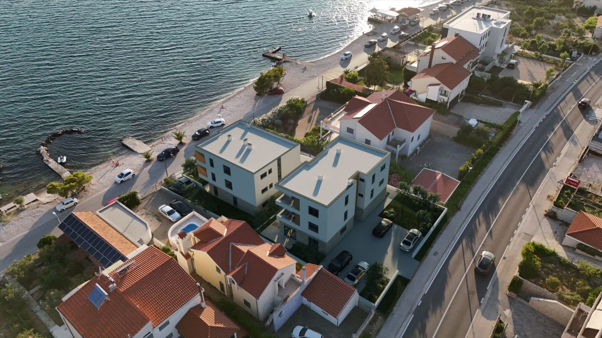 ŠIBENIK, BRODARICA – Erste Reihe direkt am Meer, Meerblick, Terrasse, NEUBAU Es gibt Immobilien am Meer … und es gibt solche in erster Reihe – wo Meer und Sonnenuntergang zum Alltag gehören. Genau so ist diese Wohnung in Brodarica, einer der begehrtesten Lagen rund um Šibenik. Solche Mikrolagen sind rar – und genau deshalb gewinnen sie langfristig an Wert. Das Projekt besteht aus zwei kleineren Gebäuden mit je sechs Wohnungen, verteilt auf Erdgeschoss und zwei Obergeschosse. Das bedeutet nur zwei Wohnungen pro Etage und deutlich mehr Privatsphäre. Die Gebäude befinden sich in erster und zweiter Reihe direkt am Meer, und alle Wohnungen bieten Meerblick. Diese Mikrolage bietet etwas, das schwer zu finden ist: direkten Zugang zum Meer ohne Kompromisse und langfristig eine der wertvollsten Lagen auf dem Markt. Apartment S3 befindet sich im 1. Obergeschoss des Gebäudes B1 (erste Reihe zum Meer), hat eine Nettofläche von 72,50 m² (68,75 m² Wohnfläche) und ist nach Süden ausgerichtet. Es besteht aus zwei Schlafzimmern, einem Flur, einem Badezimmer, einem Gäste-WC und einem Wohnzimmer mit Küche und Essbereich, das sich zu einer großzügigen, 15 m² großen Terrasse mit Meerblick öffnet. Die große Glaswand im Wohnzimmer und das Glasgeländer auf der Terrasse vermitteln das Gefühl, dass das Meer stets Teil des Raumes ist – selbst wenn man sich in der Wohnung aufhält. AUFTEILUNG • Offener Wohnbereich mit Küche und Essbereich • Zugang zur Terrasse (14,75 m²) mit herrlichem Meerblick • 2 Schlafzimmer • Badezimmer • Gäste-WC • Parkplatz AUSSTATTUNG UND BAUQUALITÄT • Fußbodenheizung (Wohnbereich + Badezimmer) • Klimaanlage in allen Räumen • Dreifachverglasung + elektrische Rollläden + Moskitonetze • Große Glasschiebetüren (öffnen den Raum maximal zum Meer) • Glasgeländer (uneingeschränkte Aussicht) • Moderne Badezimmer • Gegensprechanlage • TV und Internet in allen Räumen LAGE Brodarica bietet die perfekte Balance zwischen Alltag und Meeresnähe – nah genug an der Stadt, aber ohne deren Hektik. Käufer schätzen diese Lage, weil sie eine schnelle Anbindung an Šibenik ermöglicht und gleichzeitig außerhalb der Saison ein ruhigeres Lebensgefühl bietet. Ein besonderer Wert liegt in der unmittelbaren Nähe zum Meer, die den Wert der Immobilie langfristig sichert. • Meer: 20 m • Zentrum von Šibenik: 5,5 km (ca. 10 Autominuten) • Supermarkt: 900 m • Schule/Kindergarten: ca. 1,5 km • Nationalpark Krka und Autobahnanschluss: ca. 10 Minuten Die Lage ist erstklassig: Der Strand liegt direkt vor dem Haus. Brodarica befindet sich im Herzen Mitteldalmatiens, direkt neben Šibenik, und profitiert von einer strategisch günstigen Lage zwischen den beiden wichtigen regionalen Zentren Zadar und Split. Dank der Nähe zur Autobahn und den beiden internationalen Flughäfen Split und Zadar ist die Lage das ganze Jahr über hervorragend angebunden und leicht erreichbar. FÜR WEN IST DIESE IMMOBILIE IDEAL? Für Käufer, die eine seltene Immobilie in erster Reihe direkt am Meer suchen – eine Kombination aus Eigennutzung und sicheren touristischen Einnahmen in einer Lage, die ihren Wert langfristig erhält und steigert. Wohnungen in erster Reihe direkt am Meer in solchen Projekten sind schnell vergriffen, und die Auswahl ist bereits frühzeitig begrenzt. Für Verfügbarkeit und Reservierung kontaktieren Sie uns.