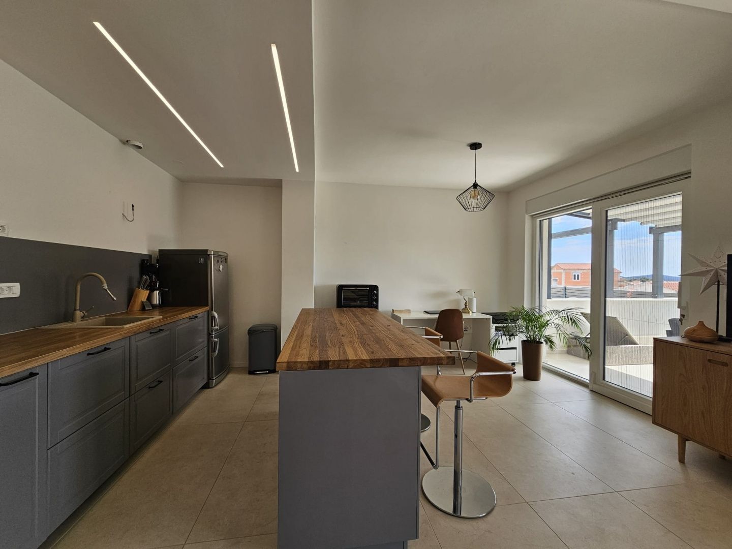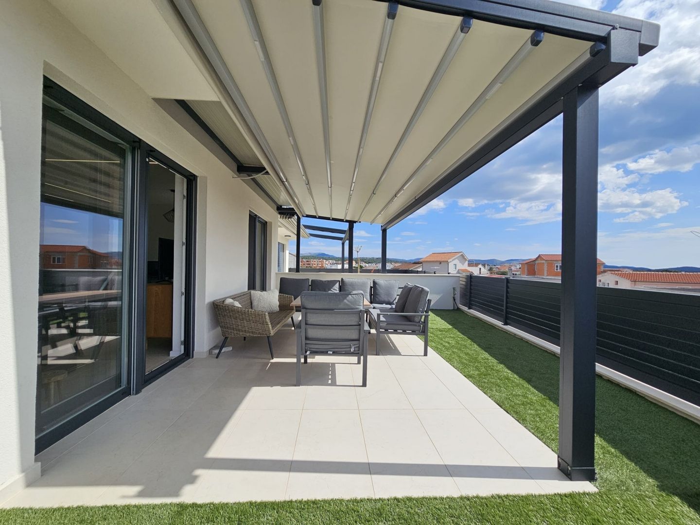 ŠIBENIK, BRODARICA – NEUBAU, Luxuriös möblierte 3-Zimmer-Erdgeschosswohnung mit Garten In Brodarica bei Šibenik steht eine möblierte 3-Zimmer-Wohnung mit einer Wohnfläche von 111,18 m² zum Verkauf. Die Wohnung befindet sich im Erdgeschoss eines Wohnhauses und verfügt über zwei private Parkplätze sowie einen kleineren Stellplatz für Motorrad, Fahrrad oder Kleinwagen, einen 12,40 m² großen Abstellraum im Untergeschoss und einen 108,34 m² großen Garten. Die Wohnung besteht aus drei Schlafzimmern, einem Badezimmer, einem Gäste-WC und einem offenen Wohn-, Ess- und Küchenbereich mit Zugang zu einer 26,46 m² großen Terrasse und dem Garten. Das Gebäude wurde nach modernsten Standards mit hochwertigen Materialien errichtet. Die Wohnung ist ausgestattet mit: Klimaanlage in allen Zimmern und im Wohnzimmer, Fußbodenheizung in allen Zimmern, im Wohnzimmer und in den Badezimmern, hochwertigen PVC-Fenstern und -Türen der Marke Gealan mit den begehrten Hebe-Schiebewänden, elektrischen Rollläden und einer beweglichen Pergola mit Elektromotor auf der Terrasse. Diese Immobilie bietet aufgrund ihrer attraktiven und gefragten Lage in Meeresnähe eine hervorragende Investitionsmöglichkeit – ob als Mietwohnung oder als Eigenheim. Sie ist bereits möbliert und bezugsfertig. Packen Sie einfach Ihre Koffer und ziehen Sie in Ihr neues Zuhause ein. Brodarica ist bekannt für seine wunderschönen Strände, das klare Meer, die familiäre Atmosphäre und die Nähe zu Šibenik und zählt daher zu den begehrtesten Wohn- und Urlaubsorten. Für weitere Informationen und Besichtigungen kontaktieren Sie uns bitte.