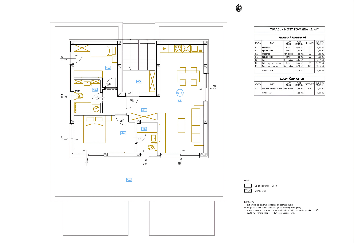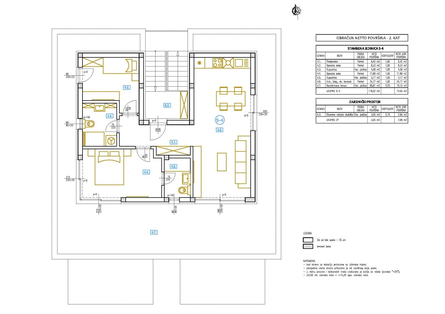 ŠIBENIK, BRODARICA – Penthouse in einem Neubau mit 60 m² Terrasse und Garage, nur 270 m vom Meer entfernt Dieses Penthouse erstreckt sich über eine ganze Etage und bietet mit seiner großzügigen Terrasse und dem offenen Wohnbereich ein Maß an Privatsphäre und Komfort, das in der derzeit begehrtesten Lage von Šibenik – Brodarica, nur 270 Meter vom Meer entfernt – selten zu finden ist. Das neue Projekt besteht aus zwei kleineren Gebäuden mit insgesamt acht Wohnungen (jeweils vier), verteilt auf Erdgeschoss und zwei Obergeschosse. Dies bedeutet weniger Nachbarn und mehr Privatsphäre. Im Erdgeschoss befinden sich Garagen und eine Wohnung, im ersten Obergeschoss zwei Wohnungen und im zweiten Obergeschoss die Penthäuser mit Meerblick. Jede Wohnung verfügt über eine eigene Garage und einen zusätzlichen Außenstellplatz (Wohnung S3 hat keinen Außenstellplatz). Dies ist im Preis inbegriffen und heutzutage auf dem lokalen Markt eine Seltenheit. Die Kombination aus Garage, Außenstellplatz und der Nähe zum Meer (nur wenige Gehminuten entfernt) bietet hier einen zusätzlichen Mehrwert. WOHNUNGSBESCHREIBUNG Wohnung S4 (GEBÄUDE OST) ist ein Penthouse, das sich über die gesamte 2. Etage des Gebäudes erstreckt. Es verfügt über eine Gesamtfläche von 85,11 m², davon 58,91 m² reiner Wohnraum. Die Südausrichtung sorgt für viel Tageslicht. Der Zugang zur Wohnung erfolgt über ein gemeinsames Treppenhaus in der Mitte der Wohnung – in einen Flur, der Wohn- und Schlafbereich auf natürliche Weise trennt und so eine klare und funktionale Raumaufteilung schafft. Der großzügige Wohnbereich mit Küche und Essbereich ist nach Süden und Osten ausgerichtet und lichtdurchflutet. Von hier aus gelangt man auf eine große Terrasse (60 m²), die sich ideal für den Alltag im Freien eignet. Der Wohnbereich zeichnet sich durch zwei große Glaswände aus, die ein luftiges und offenes Raumgefühl erzeugen und so für maximalen Wohnkomfort sorgen. Der Flur führt zum westlichen Teil der Wohnung, wo sich zwei Schlafzimmer (eines davon mit eigenem Bad) und ein weiteres Badezimmer befinden. Beide Zimmer haben Zugang zu einer großen Terrasse, die die gesamte Wohnung umgibt. Das Hauptschlafzimmer zeichnet sich zudem durch die doppelwandige Glasfront in der Südwest-Ecke aus, die dem Raum ein besonders luxuriöses Ambiente verleiht. Die 60 m² große Terrasse, die die gesamte Wohnung umgibt, und die Lage auf der gesamten Etage machen sie zu Ihrer privaten Lounge und vermitteln das Gefühl eines privaten Hauses im obersten Stockwerk. AUFTEILUNG • Offener Wohnbereich mit Küche und Essbereich • Zugang zur Terrasse (60 m²) von allen Zimmern • 2 Schlafzimmer • 2 Badezimmer • Flur trennt Wohn- und Schlafbereich BAUQUALITÄT UND AUSSTATTUNG • 10 cm Wärmedämmfassade – für mehr Wohnkomfort und niedrigere Heizkosten • Fußbodenheizung in allen Räumen außer den Schlafzimmern • Klimaanlage in allen Räumen • Kunststoffbeschichtete Aluminiumfenster mit Dreifachverglasung – für bessere Wärmedämmung und Ruhe • Elektrische Rollläden und Moskitonetze – praktischer Schutz vor Insekten ohne zusätzliche Kosten • Kombination aus Keramik und Parkett – langlebig und behaglich LAGE Brodarica zählt zu den begehrtesten Wohnlagen in der Region Šibenik, gerade wegen der idealen Lage für den Alltag in unmittelbarer Nähe zum Meer. Alle wichtigen Einrichtungen sind in wenigen Minuten erreichbar, und die nur 270 Meter zum Meer ermöglichen einen schnellen und bequemen Strandbesuch ohne Auto. Die Nähe zu Šibenik bietet schnellen Zugang zu allen städtischen Annehmlichkeiten, während die Lage selbst Funktionalität und gute Verkehrsanbindung gewährleistet. • Meer: 270 m • Geschäft: 400 m • Schule/Kindergarten: 1,2 km • Zentrum Šibenik: 7,7 km • Flughafen Split: 55,5 km • Flughafen Zadar: 78,5 km • Nationalpark Krka: 17 km • Autobahn: 11 km Die Lage an der Hauptstraße erleichtert die tägliche Fortbewegung und vermeidet enge Gassen – ein klarer Vorteil gegenüber vergleichbaren Lagen. Der Verkäufer ist eine juristische Person, und die Mehrwertsteuer ist im Preis enthalten. Der Käufer zahlt daher keine 3%ige Grundsteuer. Für wen ist diese Immobilie ideal? Ideal für Käufer, die mehr Platz, Privatsphäre und höheren Komfort in Meeresnähe suchen – ob zum ganzjährigen Wohnen oder als exklusive Kapitalanlage. Die Sicherheit der Garage und der zusätzlichen Parkplätze, die in dieser Lage selten zu finden sind, steigern den Wert dieser Immobilie. Solche Penthäuser mit großer Terrasse und Garage in dieser begehrten Lage sind eine Seltenheit auf dem Markt. Kontaktieren Sie uns für weitere Informationen oder einen Besichtigungstermin.