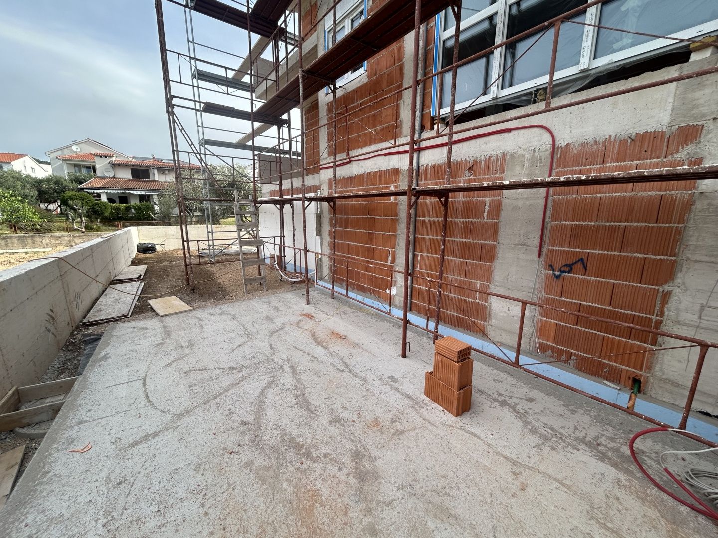 ŠIBENIK, VODICE – 121 m² großer Privatgarten, Garage, 500 m vom Meer Suchen Sie eine Wohnung, die sich im Sommer in ein Haus verwandelt? Diese Wohnung bietet einen 121 m² großen Privatgarten, der zu Ihrem Hauptwohnraum wird, und befindet sich in einer der begehrtesten Lagen von Vodice. Wohnung S3 liegt im 1. Obergeschoss eines kleinen Wohnhauses mit insgesamt 5 Wohnungen, bietet 78,57 m² Wohnfläche (105,69 m² Gesamtfläche) und ist nach Osten und Westen ausgerichtet. Vom Eingangsbereich aus erreichen Sie die Schlafzimmer auf beiden Seiten (das Hauptschlafzimmer verfügt über ein eigenes Badezimmer) sowie ein weiteres Badezimmer. Angrenzend befindet sich der Wohnbereich mit Wohnzimmer, Küche und Essbereich, der auf eine überdachte Terrasse führt. Von der Terrasse führt eine Außentreppe hinunter in einen 121 m² großen, privaten Innenhof. Hier sind bereits Anschlüsse für eine Sommerküche und eine Dusche vorbereitet, und es besteht die Möglichkeit, einen Swimmingpool zu errichten. Die Wohnung verfügt über eine Garage mit Abstellraum im Erdgeschoss, die ebenfalls über einen separaten Zugang zum Hof verfügt. So ist die Verbindung zwischen den einzelnen Wohnbereichen optimal. Was diese Immobilie auf dem Markt auszeichnet, ist der 121 m² große, umzäunte Privatgarten. Er kann in den wärmeren Monaten als Wohnbereich im Freien dienen und wird im Sommer zum zentralen Treffpunkt: • Sommerküche • Aufenthaltsbereich • Whirlpool oder Lounge-Bereich • Möglichkeit zum Bau eines Swimmingpools Dank der Fläche und der vorhandenen Infrastruktur (Strom, Wasser, Abwasser) bietet der Garten vielfältige Gestaltungsmöglichkeiten – von einer Lounge-Ecke über eine Sommerküche bis hin zum Bau eines Swimmingpools. AUFTEILUNG Die Wohnung besteht aus: • offenem Wohnbereich mit Küche und Essbereich • überdachter Terrasse (7,5 m²) • 2 Schlafzimmer (Hauptschlafzimmer mit eigenem Bad) • 2 Badezimmer (eines davon en suite) • Eingangsbereich • privatem Innenhof (121 m²) • Garagenstellplatz und Abstellraum im Erdgeschoss Ausstattung und Qualität: Die Wohnung wurde mit Fokus auf langfristigen Komfort und Energieeffizienz gebaut: • Fußbodenheizung im Wohnbereich und in den Bädern – ganzjährig angenehmes Wohnklima • Klimaanlage in allen Räumen – individuelle Temperaturregelung • PVC-Fenster (Gealan) mit Dreifachverglasung – Ruhe, Wärmedämmung und geringere Kosten • elektrischen Rollläden und Insektenschutzgittern – zusätzlicher Komfort • Schiebewänden – mehr Licht und bessere Verbindung zur Terrasse • Vorbereitung für eine Sommerküche und eine Dusche im Hof (Strom, Wasser, Abwasser) • Vorbereitung zum Laden von Elektrofahrzeugen in der Garage LAGE Die Nähe zu Das Meer und der neuere Teil von Vodice schaffen eine harmonische Balance zwischen entspanntem Wohnen und der Nähe zu allen Annehmlichkeiten. Die Lage ermöglicht eine schnelle Anbindung an das Zentrum und bietet gleichzeitig Ruhe abseits der touristischen Hauptströme. Käufer schätzen diesen Stadtteil aufgrund der Kombination aus Privatsphäre, Aussicht und Wertstabilität. ENTFERNUNGEN: • Meer: 500 m • Zentrum: ca. 1 km (15 Min. Fußweg) • Einkaufsmöglichkeiten: 900 m • Schule/Kindergarten: 1,2 km Die Lage inmitten neuerer Gebäude sorgt zudem für einen einheitlichen Standard und ein gepflegtes Umfeld. FÜR WEN IST DIESE IMMOBILIE IDEAL? Für Käufer, die sich ein Zuhause ohne Instandhaltungspflichten wünschen – für alle, die mehr als nur eine Wohnung suchen, mehr Privatsphäre und einen eigenen Außenbereich, aber auch als Kapitalanlage zur touristischen Vermietung, da der Garten den Übernachtungspreis deutlich erhöht. Wohnungen mit einem so großen privaten Garten in dieser Lage und in einem Neubau in Vodice sind äußerst selten. Kontaktieren Sie uns für weitere Informationen und eine Besichtigung, solange die Wohnung noch verfügbar ist. Vodice ist einer der beliebtesten Urlauborte in der Region Šibenik und bekannt für seine Strände und die gut ausgebaute touristische Infrastruktur.