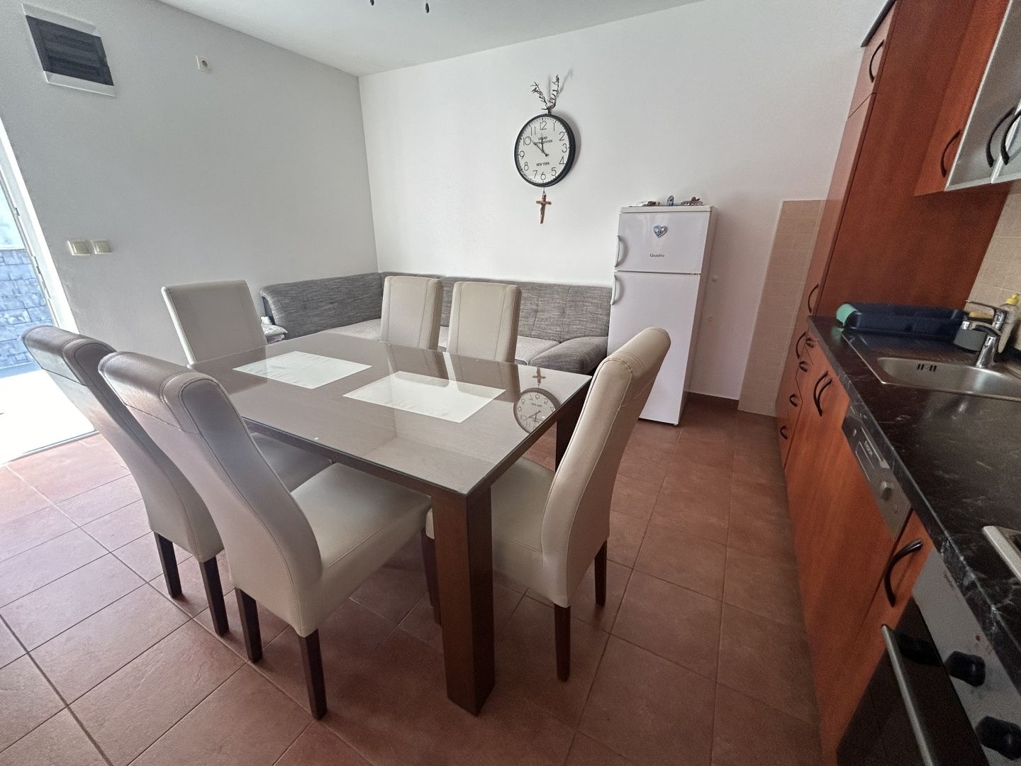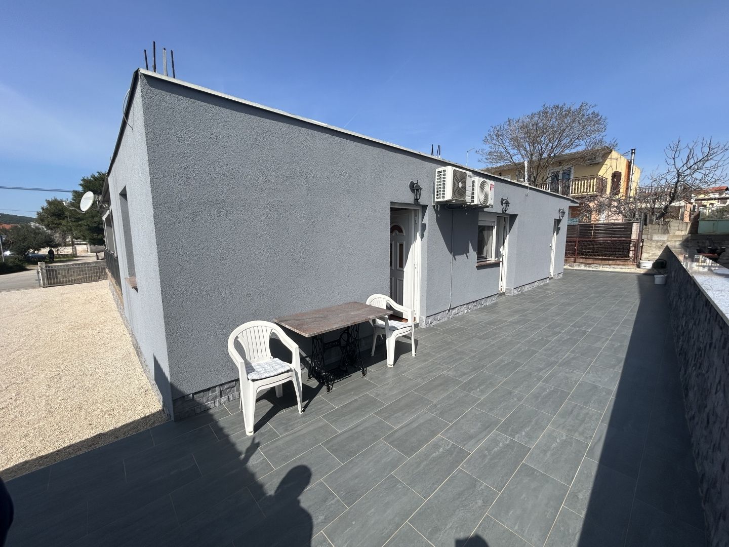 ŠIBENIK, VODICE – 3 Wohneinheiten + Möglichkeit für 6, Grundstück 920 m² Aus dem Angebot von DUX möchten wir Ihnen eine seltene Gelegenheit auf dem Immobilienmarkt von Vodice präsentieren: eine Immobilie, die ein großzügiges Grundstück, eine funktionale Raumaufteilung und ein hohes Investitionspotenzial vereint. Auf einem ca. 920 m² großen Grundstück befindet sich ein Haus mit mehreren bereits bestehenden Wohneinheiten. Die Planung für den Ausbau um ein weiteres Stockwerk mit drei zusätzlichen Wohnungen ist bereits abgeschlossen, und die Baugenehmigung dafür liegt vor. Schon jetzt ermöglicht die Immobilie die Aufteilung in mehrere separate Wohneinheiten mit jeweils eigenem Eingang. Dies bietet außergewöhnliche Flexibilität – ob für touristische Zwecke, zur Langzeitvermietung oder zur Kombination aus Eigennutzung und zusätzlichen Mieteinnahmen. Durch den Ausbau um ein weiteres Stockwerk können insgesamt sechs Wohneinheiten entstehen, was dieser Immobilie eine klare und attraktive Investitionsmöglichkeit eröffnet. Angesichts der zunehmenden Knappheit an größeren Grundstücken in neueren Stadtteilen von Vodice wird diese Gelegenheit immer seltener. GRUNDINFORMATIONEN • Immobilientyp: Haus mit 3 Wohneinheiten • Bruttogeschossfläche: 222 m² • Grundstücksgröße: ca. 920 m² • Anzahl Zimmer/Schlafzimmer: 7/4 • Baujahr: 2010 • Ausrichtung: Süd-Südost • Lage: Vodice, neuerer Teil der Siedlung AUFTEILUNG Das Objekt ist in mehrere separate Einheiten mit jeweils eigenem Eingang unterteilt und bietet somit maximale Flexibilität bei der Nutzung: • 2 Ein-Zimmer-Wohnungen mit eigener Terrasse • 2 Schlafzimmer mit Bad und separatem Eingang • separater Wohnbereich (Küche, Esszimmer und Wohnzimmer) mit separatem Eingang • zusätzliches WC mit separatem Eingang • gemeinsamer Aufenthaltsraum • großzügige Terrasse, die mehrere Einheiten verbindet BAUQUALITÄT UND AUSSTATTUNG • Fassade mit Wärmedämmung + zusätzliche Innendämmung (Mineralwolle) – ganzjährig angenehme Temperatur und niedrigere Energiekosten • PVC-Fenster und -Türen • Klimaanlage (Heizung und Kühlung) • zusätzliche Heizgeräte • möbliert Die Kombination aus Einbaumaterialien und Ausstattung ermöglicht einen komfortablen Aufenthalt und optimale Funktionalität ohne größere zusätzliche Investitionen. GARTEN UND AUSSENBEREICH • Grundstück von ca. 920 m² • Garten von ca. 700 m² • überdachte und nicht überdachte Terrassen • 2 überdachte Parkplätze • 5–6 weitere nicht überdachte Parkplätze Der großzügige Garten bietet vielfältige Gestaltungsmöglichkeiten – von der Anlage eines mediterranen Gartens und eines Entspannungsbereichs bis hin zu zusätzlichen Einrichtungen wie einem Swimmingpool oder touristischen Angeboten. LAGE Das Anwesen befindet sich in einem neueren, ruhigeren Teil von Vodice mit überwiegend neuerer Bebauung und weniger Touristenandrang. Dies macht es ideal für den Alltag und längere Aufenthalte. Die Nähe zum Zentrum, zu Geschäften, Schulen und Hauptstraßen ermöglicht eine einfache Organisation des Alltags. Die gute Verkehrsanbindung erhöht die Attraktivität des Anwesens zusätzlich – insbesondere im Hinblick auf die touristische Vermietung und die häufige Ankunft von Gästen. • Meer: 1,5 km • Strand: 2 km • Zentrum von Vodice: 1,5 km • Šibenik: 13,5 km • Einkaufsmöglichkeiten: 700 m • Schule/Kindergarten: 1,6 km • Nationalpark Krka: 22 km • Flughafen Split: 62 km • Flughafen Zadar: 60 km • Autobahn: 16,5 km FÜR WEN IST DIESE IMMOBILIE IDEAL? Eine ideale Gelegenheit für Käufer, die eine Kombination aus hochwertigem Wohnraum und sicherem Investitionspotenzial suchen – sei es durch Vermietung oder Weiterentwicklung. Für weitere Informationen und zur Vereinbarung eines Besichtigungstermins kontaktieren Sie uns bitte.