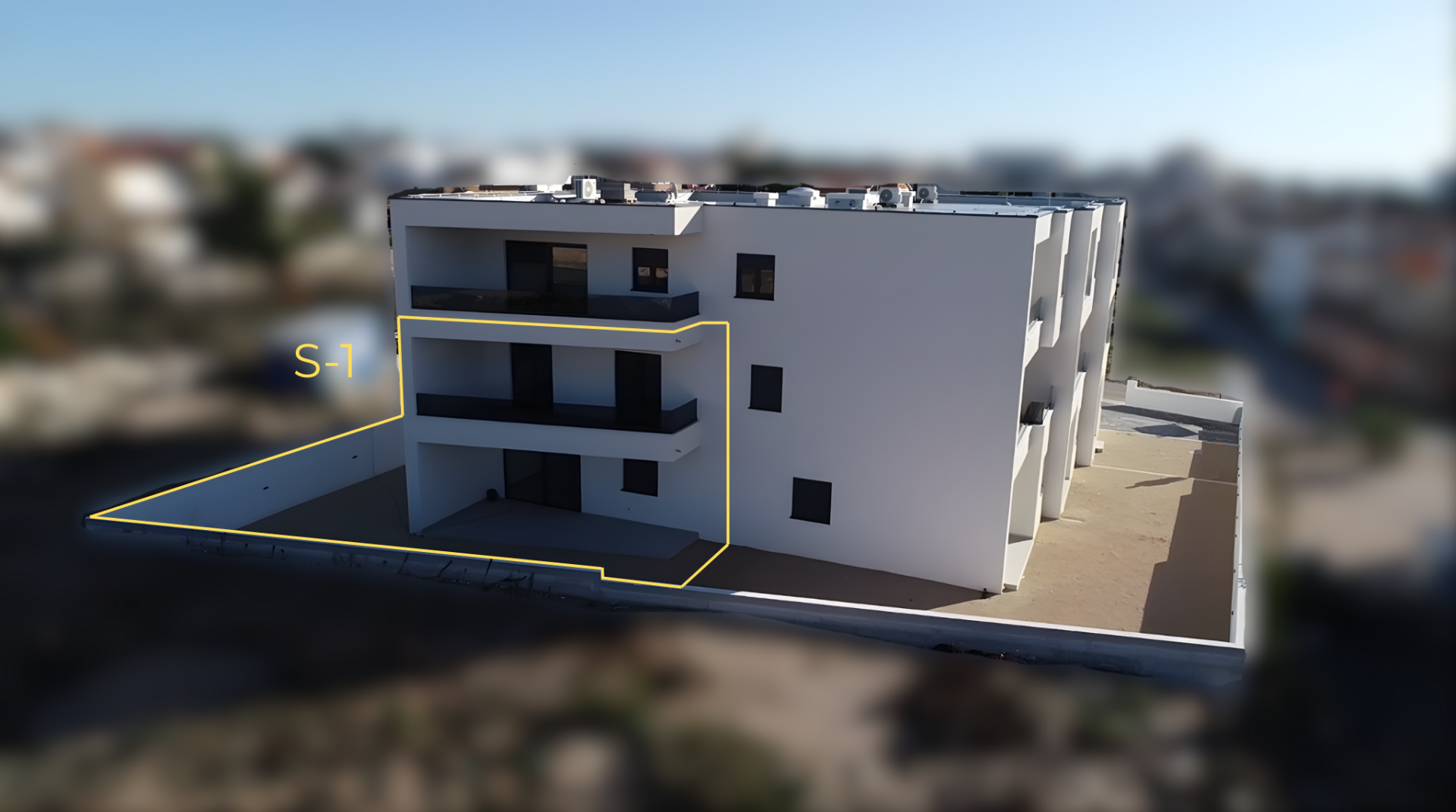 VODICE – Schöne Maisonette-Wohnung S1 in ruhiger Lage Zum Verkauf steht eine zweistöckige Wohnung mit einer Gesamtfläche von 172,73 m2. Die Wohnung befindet sich in einer ruhigen Straße in Vodice, nicht weit vom Stadtzentrum und den Stränden entfernt. Die Wohnung erstreckt sich über das Erdgeschoss und das 1. Obergeschoss des Gebäudes. Im Erdgeschoss befindet sich ein Wohnzimmer mit Küche und Esszimmer, das zu einer überdachten Terrasse von 9,25 m2 führt. Zum Erdgeschoss gehören außerdem ein Flur, ein Badezimmer, ein Abstellraum und eine Treppe, die in den ersten Stock führt. Im Obergeschoss befinden sich drei Schlafzimmer und ein separates Badezimmer, das Hauptschlafzimmer verfügt über ein eigenes Badezimmer und eine Loggia, während die anderen beiden Schlafzimmer Zugang zu einer überdachten Terrasse haben. Zur Wohnung gehören ein 14 m2 großer Hof und zwei Parkplätze. Die Wohnung ist mit einer Klimaanlage und einer Fußbodenheizung ausgestattet, die zu jeder Jahreszeit für eine optimale Temperatur sorgt. Beim Bau der Wohnung wurden hochwertige Materialien verwendet, die Langlebigkeit und Behaglichkeit garantieren. VODICE – Die charmante Nachtleben- und Strandstadt Vodice ist ein kleines Touristenziel 10 Kilometer nördlich von Šibenik. Sie sind bei jungen Besuchern beliebt, die nach lebendigen Orten suchen. Vodice bietet tolle Hotels, Strände und ein reges Nachtleben. Der Name „Vodice“ wurde erstmals im Jahr 1402 in schriftlichen Dokumenten erwähnt, obwohl bekannt ist, dass dort bereits zur Römerzeit Menschen lebten. Der Ort wurde wegen des Überflusses an Wasser und Brunnen „Vodice“ genannt. In der Nähe liegt die Insel Prvić, die Stadt Split ist 69 km entfernt, Zadar ist 59 km entfernt und der nächste Flughafen ist 49 km entfernt.