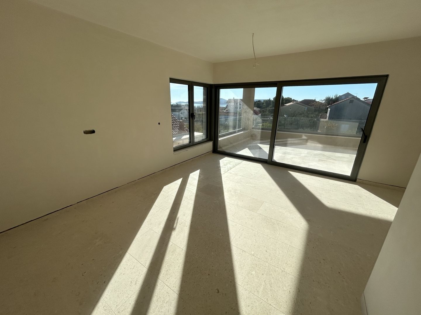ŠIBENIK, VODICE – Luxus-Penthouse mit drei Terrassen, Aufzug und Meerblick! Exklusives Penthouse im 2. Obergeschoss eines modernen Neubaus in Vodice, entworfen von einem renommierten Architekten. Dieses herausragende Apartment besticht durch sein zeitgenössisches Design, die hochwertigsten Materialien und den Panoramablick auf das Meer. Das Penthouse verfügt über einen großzügigen, offenen Wohn-, Küchen- und Essbereich mit Zugang zur 38,44 m² großen Hauptterrasse – ideal, um traumhafte Sonnenuntergänge zu genießen. Es bietet drei komfortable Schlafzimmer, das Hauptschlafzimmer mit eigenem Bad und privater Terrasse. Zusätzlich gibt es ein weiteres Badezimmer, eine dritte Terrasse und einen Hauswirtschaftsraum. Ein besonderes Highlight ist der Aufzug, der direkt ins Apartment führt und diese Immobilie einzigartig macht. Das Apartment ist mit Fußbodenheizung im gesamten Wohnbereich, hochwertigen Aluminium-Fenstern und -Türen, eleganten Hebe- und Schiebewänden sowie Natursteinböden ausgestattet. Alle Zimmer sind klimatisiert, und es stehen zwei Parkplätze zur Verfügung. Die Lage ist äußerst praktisch – in einem ruhigen Teil von Vodice, in der Nähe der Schule und aller wichtigen Einrichtungen. Dies macht dieses Penthouse zur idealen Wahl für ein luxuriöses Leben, einen erholsamen Urlaub oder als Kapitalanlage. Für weitere Informationen oder zur Vereinbarung eines Besichtigungstermins kontaktieren Sie uns bitte.