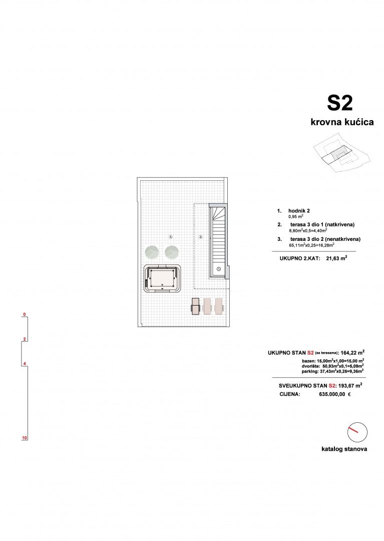 ŠIBENIK, VODICE – Dreifamilienhaus mit Dachterrasse, Pool und Panoramablick Wohnung S2 in einem luxuriösen Dreifamilienhaus in Vodice zu verkaufen. Diese Immobilie ist nicht für Käufer gedacht, die einen Kompromiss zwischen Preis und Lage suchen. Sie richtet sich an alle, denen Luxus, Meerblick, Privatsphäre und hochwertige Bauweise besonders wichtig sind. In bester Lage in Vodice entsteht ein modernes Dreifamilienhaus mit drei separaten Wohneinheiten, jeweils mit eigenem Eingang, Pool und Garten. Die Wohneinheiten erstrecken sich über Erdgeschoss und Obergeschoss. S2 und S3 verfügen zusätzlich über eine Dachterrasse mit Whirlpool und Meerblick. Wohnung S2 umfasst Erdgeschoss, Obergeschoss und Dachgeschoss und bietet eine Wohnfläche von 193,67 m². Das Erdgeschoss beinhaltet ein Schlafzimmer, ein Badezimmer und ein geräumiges Wohnzimmer mit offener Küche und Essbereich. Eine große Glaswand verbindet den Innenraum mit Terrasse, Pool und Garten und ermöglicht einen ständigen Blick aufs Meer. Im Obergeschoss befinden sich zwei Schlafzimmer, wobei das Hauptschlafzimmer über ein eigenes Bad und Zugang zu einer privaten Terrasse verfügt, sowie ein weiteres Badezimmer. Neben Erdgeschoss und erstem Obergeschoss bietet S2 auch eine Dachterrasse, die als privater Bereich zum Entspannen, Sonnenbaden und für gesellige Abende mit Panoramablick auf das Meer konzipiert ist. Ein Whirlpool ist geplant, und ein Teil der Terrasse ist überdacht. Die Wohnung wird nach hohen Standards modernen Bauens ausgestattet, wobei hochwertige Materialien und technische Lösungen auf langfristige Energieeffizienz und Komfort ausgelegt sind. Moderne Aluminiumfenster und -türen, Fußbodenheizung mit Wärmepumpen, Klimaanlage in allen Räumen sowie eine Kombination aus Parkett in den Wohnbereichen und Keramikfliesen in Bädern und Hauswirtschaftsräumen sind geplant. Dieser Ausstattungsstandard gewährleistet hohen Wohnkomfort, geringe Instandhaltungskosten und einen stabilen Wert der Immobilie. S2 ist die ideale Wahl für Käufer, die den Komfort einer Luxusvilla in einem modernen und funktional gestalteten Neubau suchen. VODICE – Charmante Stadt mit pulsierendem Nachtleben und traumhaften Stränden Vodice ist ein beliebtes Touristenziel, 10 Kilometer nördlich von Šibenik. Vodice besticht durch erstklassige Hotels, wunderschöne Strände und ein abwechslungsreiches Nachtleben. In der Nähe befindet sich die kleine Insel Prvić. Die Stadt Split ist 69 km, Zadar 59 km und der nächste Flughafen 49 km entfernt. Für weitere Informationen oder zur Vereinbarung eines Besichtigungstermins kontaktieren Sie uns bitte.