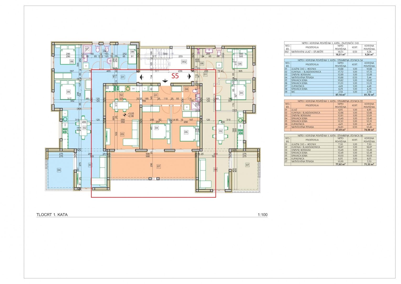 ŠIBENIK, VODICE – 2-Zimmer-Wohnung in einem Neubau mit großer Terrasse und traumhaftem Meerblick! Zum Verkauf steht eine 2-Zimmer-Wohnung in einem Neubau mit einer Wohnfläche von 81,50 m² und einer Gesamtfläche von 103,91 m². Die Wohnung befindet sich im 1. Obergeschoss eines Wohngebäudes mit insgesamt 9 Wohneinheiten. Die Wohnung verfügt über zwei geräumige Schlafzimmer, ein Badezimmer und eine offene Küche mit Ess- und Wohnbereich, von dem aus man auf eine große, überdachte Terrasse von 25 m² gelangt. Zur Wohnung gehören außerdem ein Parkplatz und ein Abstellraum im Erdgeschoss. Diese Wohnung ist das absolute Highlight des Gebäudes und besticht durch ihre 25 m² große Terrasse mit atemberaubendem Meerblick auf das Meer und die Schären von Šibenik! Alle Räume der Wohnung sowie das Wohnzimmer sind klimatisiert. Wohnzimmer und Badezimmer verfügen über Fußbodenheizung. Alle Fenster und Türen sind mit hochwertigen Schreinerarbeiten und elektrischen Rollläden ausgestattet. TV-/SAT-Anschlüsse befinden sich in allen Zimmern und im Wohnzimmer, eine Ladestation für Elektroautos ist im Abstellraum vorhanden. In Vodice, in wunderschöner Lage, befindet sich ein Wohngebäude mit neun Wohneinheiten. Die leicht erhöhte Lage des Gebäudes bietet den Wohnungen im ersten und zweiten Stock einen herrlichen Meerblick. Die Nähe zur Schule (300 m), zu Einkaufszentren (500 m), zum Ortskern von Vodice (500 m) und zum Strand (900 m) sowie zu allen anderen Annehmlichkeiten, die in wenigen Minuten erreichbar sind, machen diese Immobilie ideal für Ihr zukünftiges Zuhause oder Ihre Sommerresidenz. Für weitere Informationen oder zur Vereinbarung eines Besichtigungstermins kontaktieren Sie uns bitte! VODICE – Charmante Stadt mit pulsierendem Nachtleben und traumhaften Stränden Vodice ist ein kleiner Ferienort, 10 Kilometer nördlich von Šibenik. Er ist besonders bei jungen Besuchern beliebt, die ein lebhaftes Ambiente suchen. Vodice bietet erstklassige Hotels, Strände und ein vielfältiges Nachtleben. Der Name „Vodice“ wurde erstmals 1402 schriftlich erwähnt, obwohl bekannt ist, dass der Ort bereits in der Römerzeit besiedelt war. Der Ort erhielt seinen Namen aufgrund des reichlichen Wasservorkommens und der zahlreichen Brunnen. In der Nähe befindet sich die kleine Insel Prvić. Die Stadt Split ist 69 km, Zadar 59 km und der nächste Flughafen 49 km entfernt.