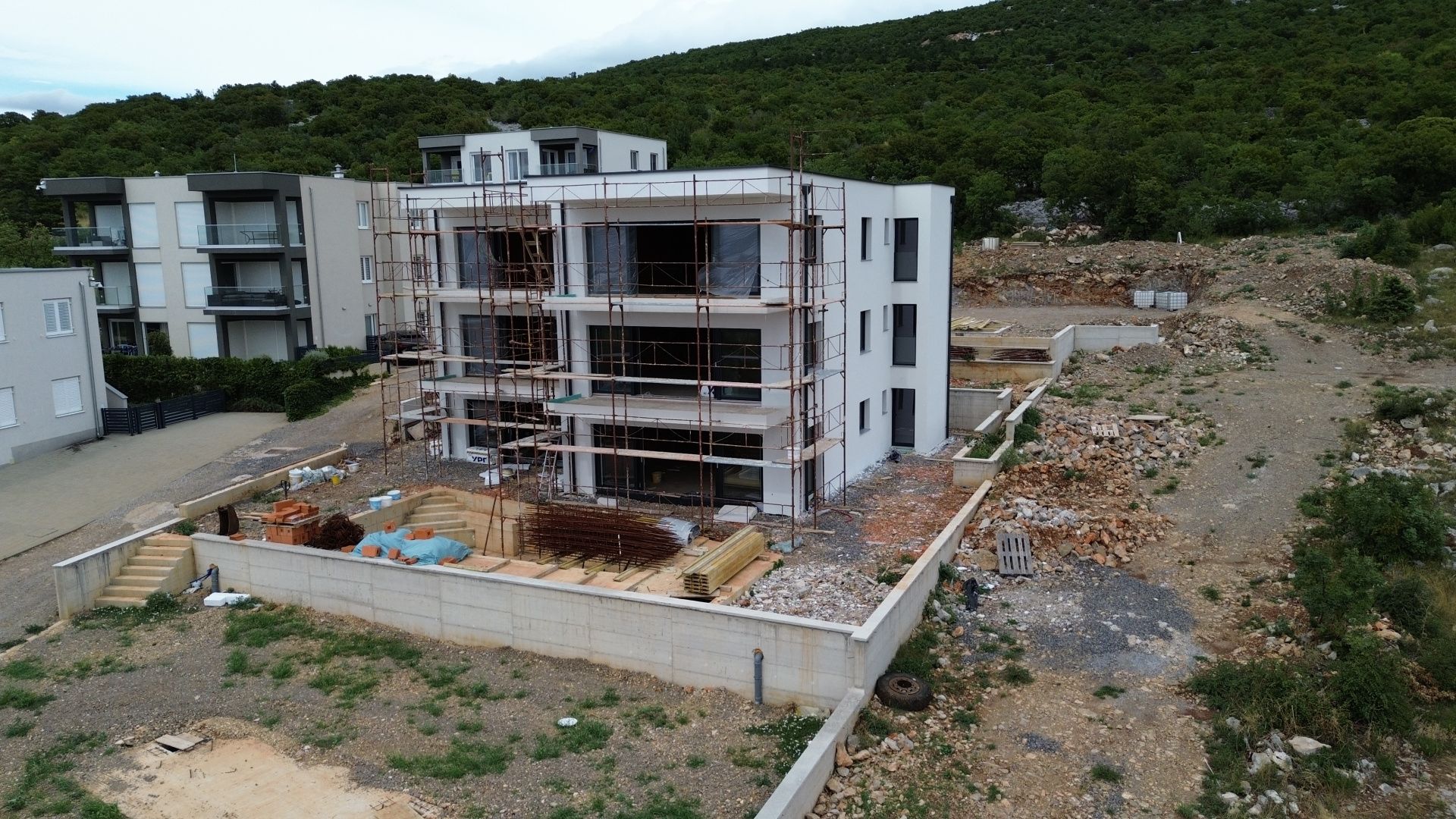 KLENOVICA - Apartment mit Gemeinschaftspool und Meerblick Das Apartment befindet sich im Erdgeschoss eines Gebäudes mit insgesamt 2 Etagen, nur 60 m vom Meer entfernt. Es besteht aus einer Eingangshalle, einem offenen Raum, in dem sich eine Küche mit Esszimmer und einem Wohnzimmer befindet, 2 geräumigen Schlafzimmern, einem großen Badezimmer und einer Gästetoilette. Vom Wohnzimmer aus gibt es eine Terrasse mit Blick auf das Meer und einen Ausgang zum Garten. Im Garten gibt es auch einen Gemeinschaftspool. Im Preis der Wohnung ist eine moderne, maßgefertigte Küche mit Haushaltsgeräten enthalten. berechnet