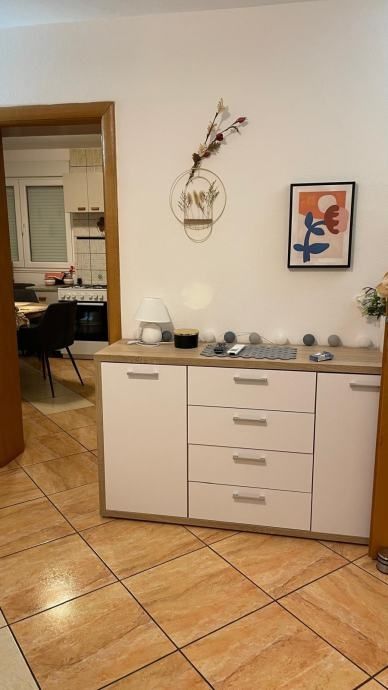 SV. FILIP I JAKOV – 2-Zimmer-Wohnung mit Meerblick! Zum Verkauf steht eine 78 m² große Wohnung im ersten Stock eines kleinen Wohnhauses mit insgesamt drei Wohnungen in ruhiger Lage von Sveti Filip i Jakov. Die Wohnung besticht durch ihren wunderschönen Blick auf das Meer und die vorgelagerten Inseln, der zu jeder Jahreszeit für ein besonderes Flair sorgt. Die Wohnung ist funktional aufgeteilt und besteht aus einem Flur, separatem WC und Badezimmer, zwei Schlafzimmern, einer Wohnküche und einem Wohnzimmer mit Zugang zu einer geräumigen, überdachten Terrasse. Die Terrasse ist der ideale Ort zum Entspannen, geselligen Beisammensein und um den Meerblick zu jeder Jahreszeit zu genießen. Zusätzlich bietet die Wohnung zwei saubere und leicht zugängliche Abstellräume im Keller. Einer davon kann bei Bedarf in ein weiteres Schlafzimmer oder einen zusätzlichen Wohnbereich umgewandelt werden. Das Gebäude liegt in einer ruhigen Straße, nur ca. 600 Meter vom Ortszentrum, dem Meer und dem gepflegten Strand entfernt. Ein besonderer Vorteil ist die Zufahrt über die Straße, die unter der Adriastraße hindurchführt. So erreichen Sie Ihr Ziel sicher und ungehindert, ohne die Straße überqueren zu müssen. Diese Immobilie ist eine ausgezeichnete Wahl für ein ruhiges Familienleben, einen Urlaub oder als Kapitalanlage zur touristischen Vermietung.