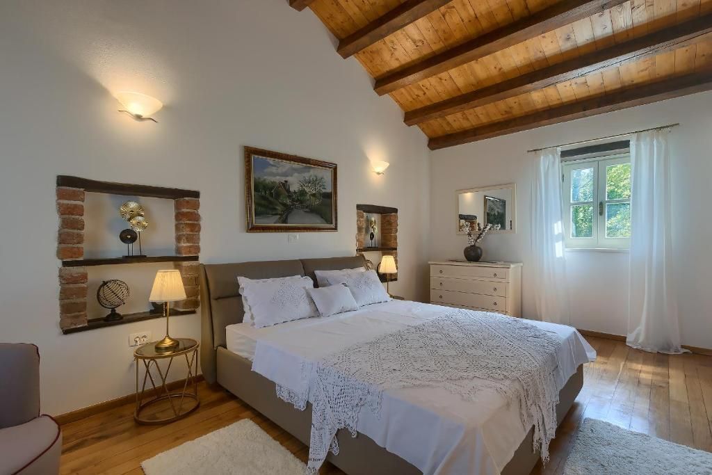 TINJAN – Wunderschöne Steinvilla mit Pool In einem ruhigen, grünen istrischen Dorf in unmittelbarer Nähe von Tinjan steht eine wunderschöne Steinvilla mit Pool zum Verkauf. Dieses Anwesen vereint authentischen istrischen Stil mit modernem Wohnkomfort und ist dank seiner Lage und Ausstattung eine ausgezeichnete Wahl für ein ruhiges Familienleben, einen erholsamen Urlaub oder die Fortsetzung touristischer Aktivitäten. Die Villa befindet sich auf einem großen, gärtnerisch gestalteten Grundstück, das von Trockenmauern umgeben ist. Den Mittelpunkt des Gartens bildet ein 37 m² großer Pool, umgeben von einer Liegewiese und einem bewässerten Rasen. Ein überdachter Parkplatz erhöht die Funktionalität des Anwesens zusätzlich. Die 280 m² große Wohnfläche verteilt sich auf Erdgeschoss und Obergeschoss. Das Obergeschoss ist dem privaten Schlafbereich vorbehalten. Es gibt drei komfortable Schlafzimmer, jeweils mit eigenem Bad, sowie eine überdachte Terrasse, die zum Entspannen mit Blick auf den Wald und die umliegende Natur einlädt. Im Erdgeschoss befindet sich ein großzügiger und funktionaler Wohnbereich. Die geräumige Küche mit Speisekammer ist mit dem Ess- und Wohnzimmer verbunden, in dem der Kamin ein besonderes Highlight darstellt. Vom Wohnzimmer gelangt man auf eine überdachte Terrasse mit Grillplatz, einem weiteren Badezimmer und dem Heizungsraum. Für behagliche Wärme sorgen eine Fußbodenheizung mit Wärmepumpe, eine Klimaanlage und ein Kamin, die ganzjährig Komfort garantieren. Beim Bau wurden hochwertige Materialien verwendet, wobei besonderes Augenmerk auf Holz- und Steinelemente gelegt wurde, die den istrischen Charakter unterstreichen. Die Innenausstattung besteht aus Holz, und die Villa wird möbliert verkauft. Die Lage bietet die perfekte Kombination aus Privatsphäre und der Nähe zu allen Annehmlichkeiten. Das Meer ist nur 20 Autominuten entfernt, und die Umgebung bietet zahlreiche kulturelle und gastronomische Angebote. Diese Steinvilla ist eine seltene Gelegenheit für alle, die Ruhe, Authentizität und eine angenehme Atmosphäre im Herzen Istriens suchen – ob für den Eigenbedarf oder als Kapitalanlage in der Ferienvermietung. ****