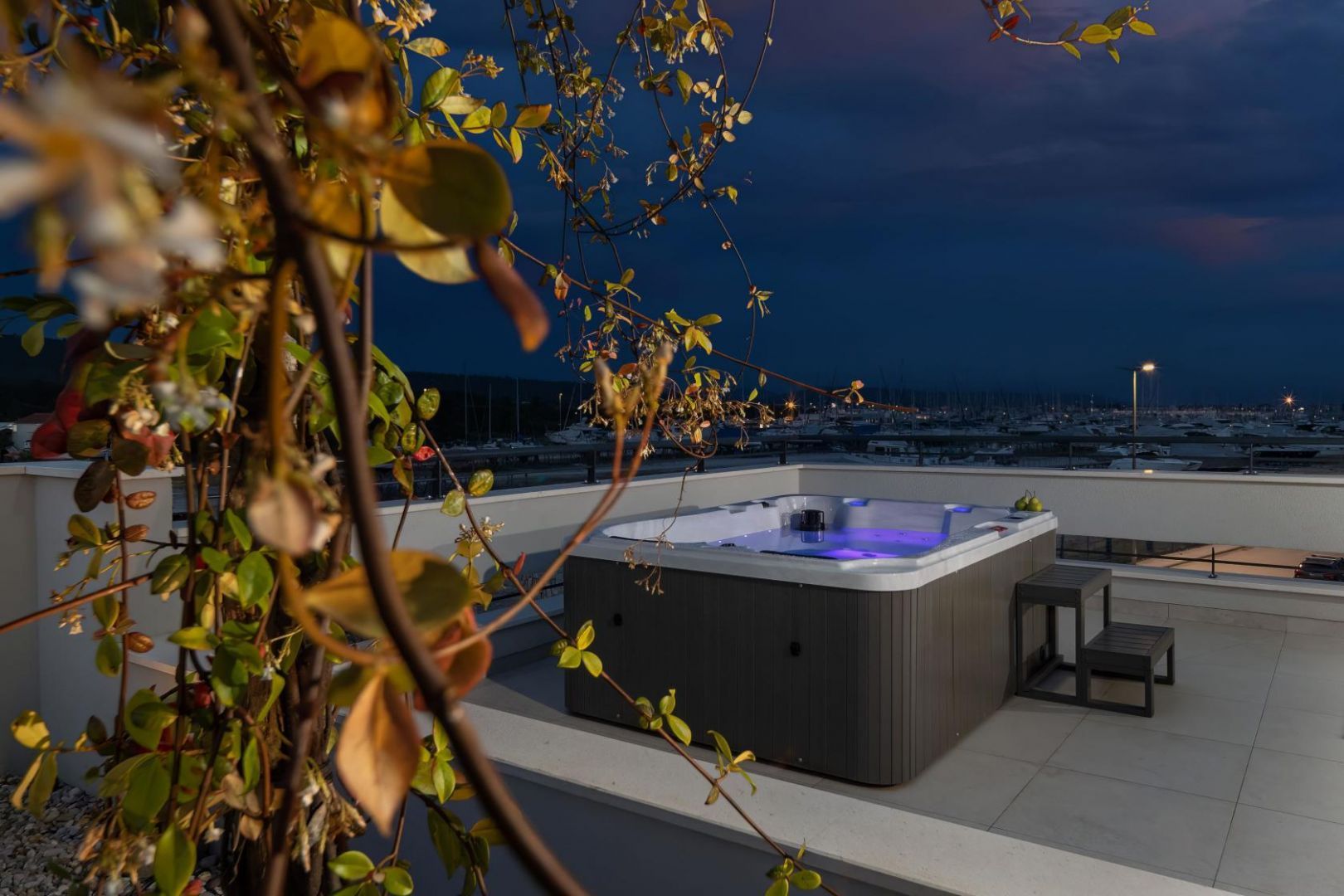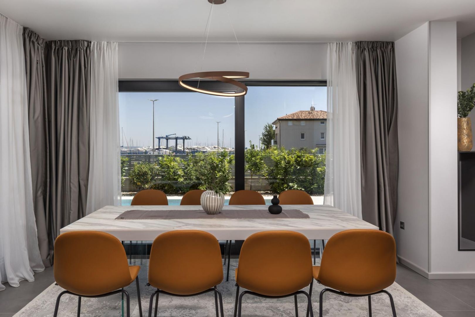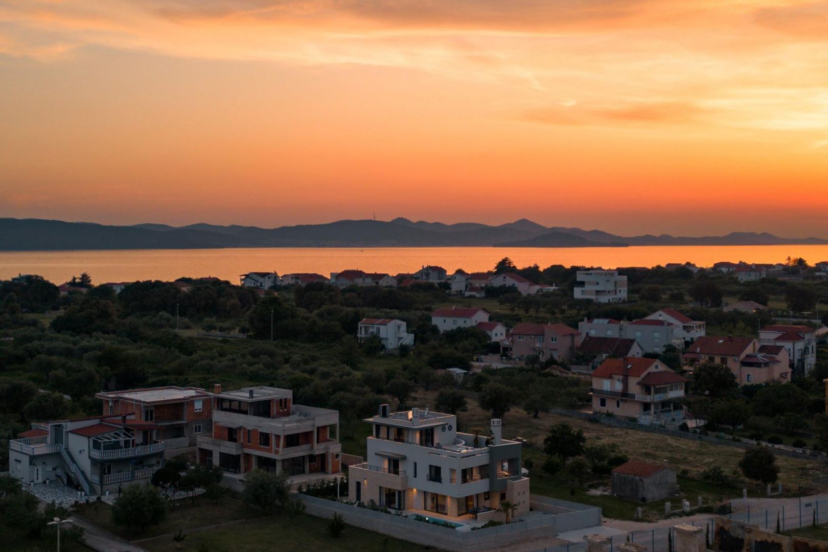 ZADAR, BIBINJE – Designer-Villa mit Pool in der Nähe von Zadar! Diese wunderschöne, modern gestaltete Villa befindet sich in einzigartiger Lage in Bibinje, nur 350 Meter vom Meer entfernt und in unmittelbarer Nähe der Marina Dalmacija – dem größten Yachthafen an der Adria. Die Villa bietet einen atemberaubenden Blick auf die imposanten Masten des Yachthafens und die grünen Hügel oberhalb von Bibinje, wodurch jeder Moment Ihres Aufenthalts ein besonderes mediterranes Flair erhält. Die Villa wurde von renommierten kroatischen Architekten und Designern mit viel Liebe zum Detail entworfen und eingerichtet, wobei besonderer Wert auf optimale Raumausnutzung und höchsten Wohnkomfort gelegt wurde. Jedes Detail wurde sorgfältig durchdacht, um Ihnen in der Villa ein rundum komfortables, entspannendes und luxuriöses Erlebnis zu bieten. Im Erdgeschoss befinden sich eine elegant eingerichtete Küche mit Essbereich, ein geräumiges Wohnzimmer mit Kamin und großer Eckcouch, ein Ankleidezimmer, ein Badezimmer und ein Gäste-WC. Vom Wohnzimmer gelangen Sie auf eine Sonnenterrasse mit beheiztem Pool, Sommerküche mit Grill und Essbereich im Freien. Auf der anderen Seite befindet sich eine private Sauna zum Entspannen. Im Obergeschoss befinden sich drei helle Schlafzimmer, jeweils mit eigenem Bad und Balkon, die einen herrlichen Blick auf das Meer und die umliegende Landschaft bieten. Das Dachgeschoss ist ganz dem Genuss gewidmet: Großzügige, teilweise überdachte Terrassen mit Whirlpool und ein komfortabler Loungebereich laden zum Entspannen am Abend bei Sonnenuntergang und Blick auf die Inselgruppe von Zadar ein. Bibinje ist ein malerisches dalmatinisches Städtchen, nur 8 km von Zadar entfernt. Es ist bekannt für sein authentisches Flair, sein vielfältiges Kultur- und Gastronomieangebot sowie zahlreiche Sommerveranstaltungen. Zahlreiche Tavernen, Fischrestaurants und moderne Bars runden das mediterrane Urlaubserlebnis ab. Die Nähe zu Zadar bietet zudem die Möglichkeit, eine Stadt mit außergewöhnlich reicher Geschichte, einem reichen kulturellen Erbe und modernen Annehmlichkeiten zu entdecken. Diese attraktive Immobilie unterliegt der Mehrwertsteuer, sodass beim Kauf keine Grunderwerbsteuer anfällt. Erfolgt der Kauf über eine mehrwertsteuerpflichtige juristische Person, besteht die Möglichkeit einer Mehrwertsteuerrückerstattung. Dies macht diese Villa zu einer besonders interessanten und rentablen Investition. Zusätzlich zu dieser Villa besteht die Möglichkeit, eine identische Villa direkt dahinter zu erwerben. Auch diese Villa ist ein Neubau in höchster Qualität, mit demselben erstklassigen Design und derselben umfangreichen Ausstattung. Sie ist ebenfalls mehrwertsteuerpflichtig. Diese einzigartige Gelegenheit ist ideal für alle, die mehr Platz für Familie und Freunde suchen, eine Kombination aus privater Unterkunft und touristischer Investition wünschen oder eine Luxusimmobilie für geschäftliche Zwecke benötigen. Für weitere Informationen und zur Vereinbarung eines Besichtigungstermins kontaktieren Sie uns bitte. Sorgfältig gestalteter Luxus in perfekter Lage erwartet Sie.