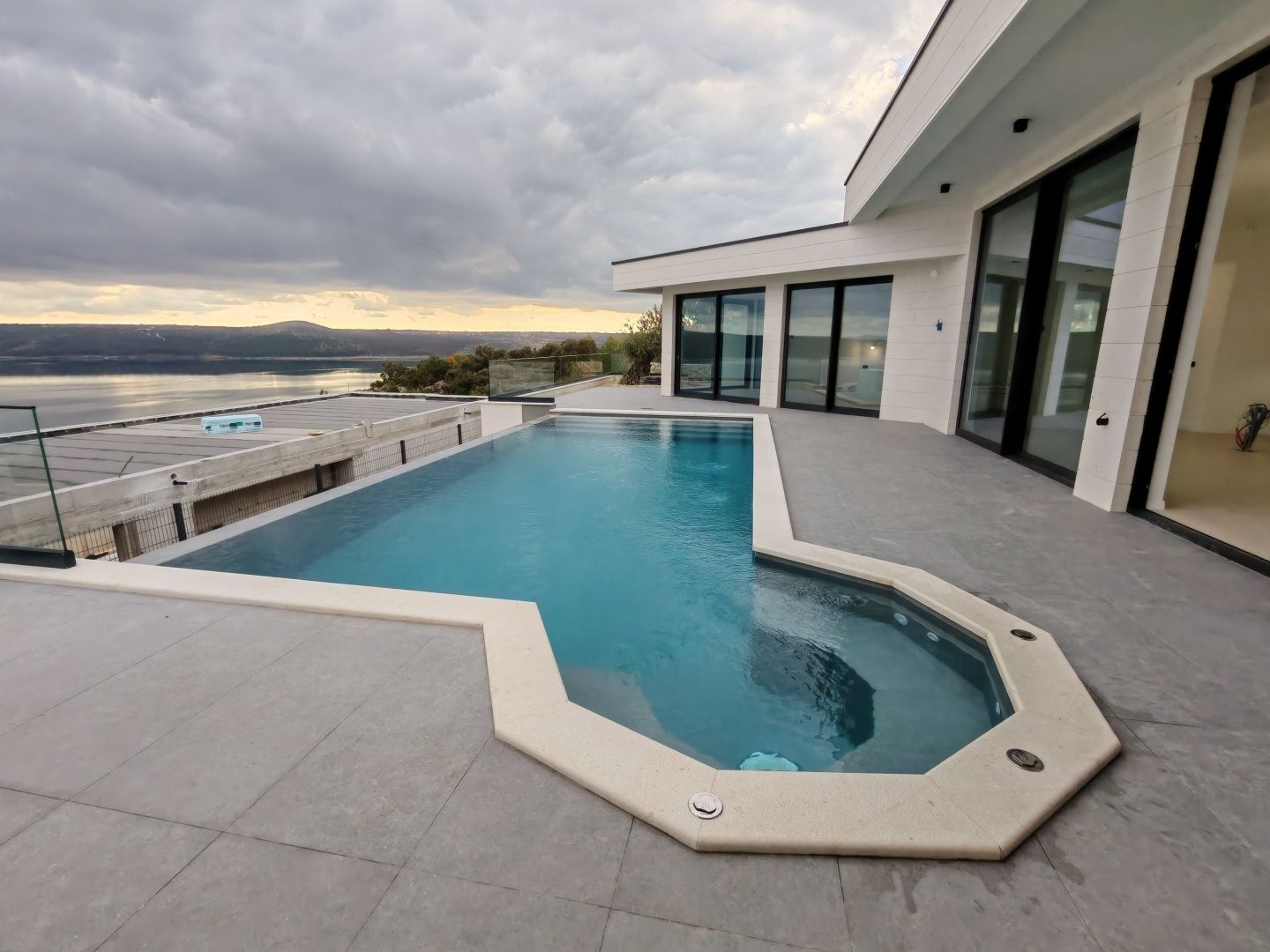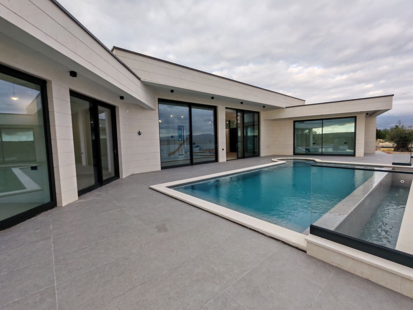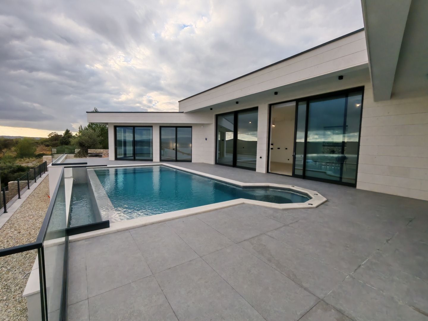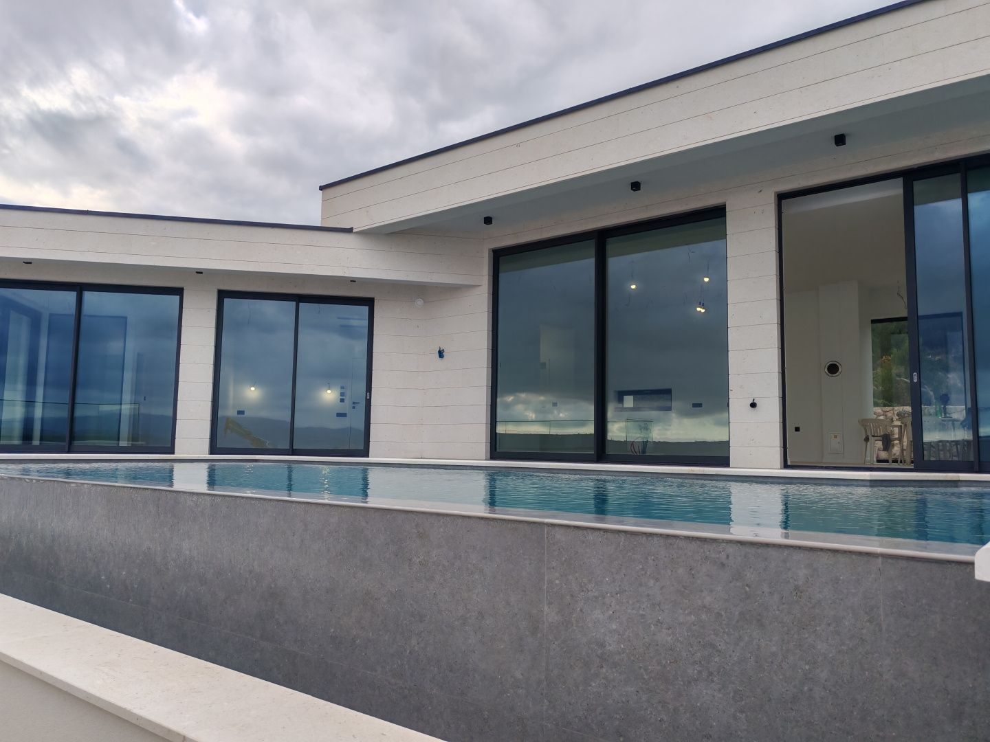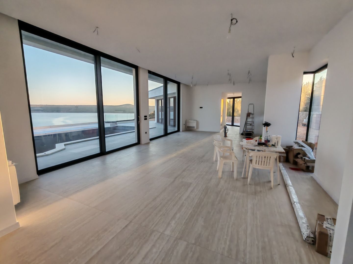 ZADAR, POSEDARJE - Bezaubernde Erdgeschossvilla mit Panoramablick auf das Meer! Willkommen in der Oase eleganten Komforts und zeitgenössischen Stils, wo außergewöhnliche Bauweise auf die endlose Schönheit der Adria trifft. Dieses luxuriöse einstöckige Haus in Posedarje liegt an der Küste und bietet eine einzigartige Kombination aus Komfort, Eleganz und spektakulärer Aussicht. Jedes Detail dieser Villa wurde sorgfältig entworfen, um das ultimative Erlebnis von Stil und Komfort zu bieten. Mit seinen exquisit konstruierten Stahlbetonwänden ist diese Residenz ein Synonym für Stärke und Sicherheit. Die mit handbehauenem Naturstein verkleideten Zaunwände sorgen für einen Hauch traditioneller Eleganz, der sich perfekt in die Naturlandschaft einfügt. Die Tischlerei von Schuco sorgt für optimale Beleuchtung und Belüftung, während das geräumige Wohnzimmer mit einem unglaublichen Blick auf das endlose Blau des Meeres zum Entspannen einlädt. Der beheizte Infinity-Pool mit Whirlpool vermittelt ein Gefühl von Luxus und Privatsphäre, während die Fußbodenheizung des gesamten Hauses für angenehme Wärme in allen Räumen sorgt. Die mit natürlichem Brač-Stein verkleidete Fassade strahlt endlose Eleganz und Qualität aus, während die raumhohen Schiebetüren von Schuco jedem Raum ein Gefühl von Geräumigkeit und Licht verleihen. Diese Villa bietet nicht nur Luxus, sondern auch Funktionalität und Sicherheit. Der private Garten und der Pool bieten eine Oase der Ruhe und Entspannung, während gesicherte Parkplätze und Videoüberwachung für vollständige Sicherheit Ihres Fahrzeugs und Ihres Zuhauses sorgen. Mit vier geräumigen Schlafzimmern, jedes mit eigenem Bad, bietet dieses einstöckige Haus den perfekten Raum für die ganze Familie zum Genießen und Entspannen. Mit einer Wohnfläche von 204 Quadratmetern und einem großzügigen Garten von 808 Quadratmetern bietet diese Villa eine unglaubliche Gelegenheit für ein Traumleben entlang der Adriaküste. Lassen Sie sich von diesem einstöckigen Haus in Posedarje mit seiner Schönheit und seinem Komfort verzaubern und schaffen Sie so einen perfekten Ort, um das Leben am Meer zu genießen. Im Bau, geplante Fertigstellung bis Mai 2025.