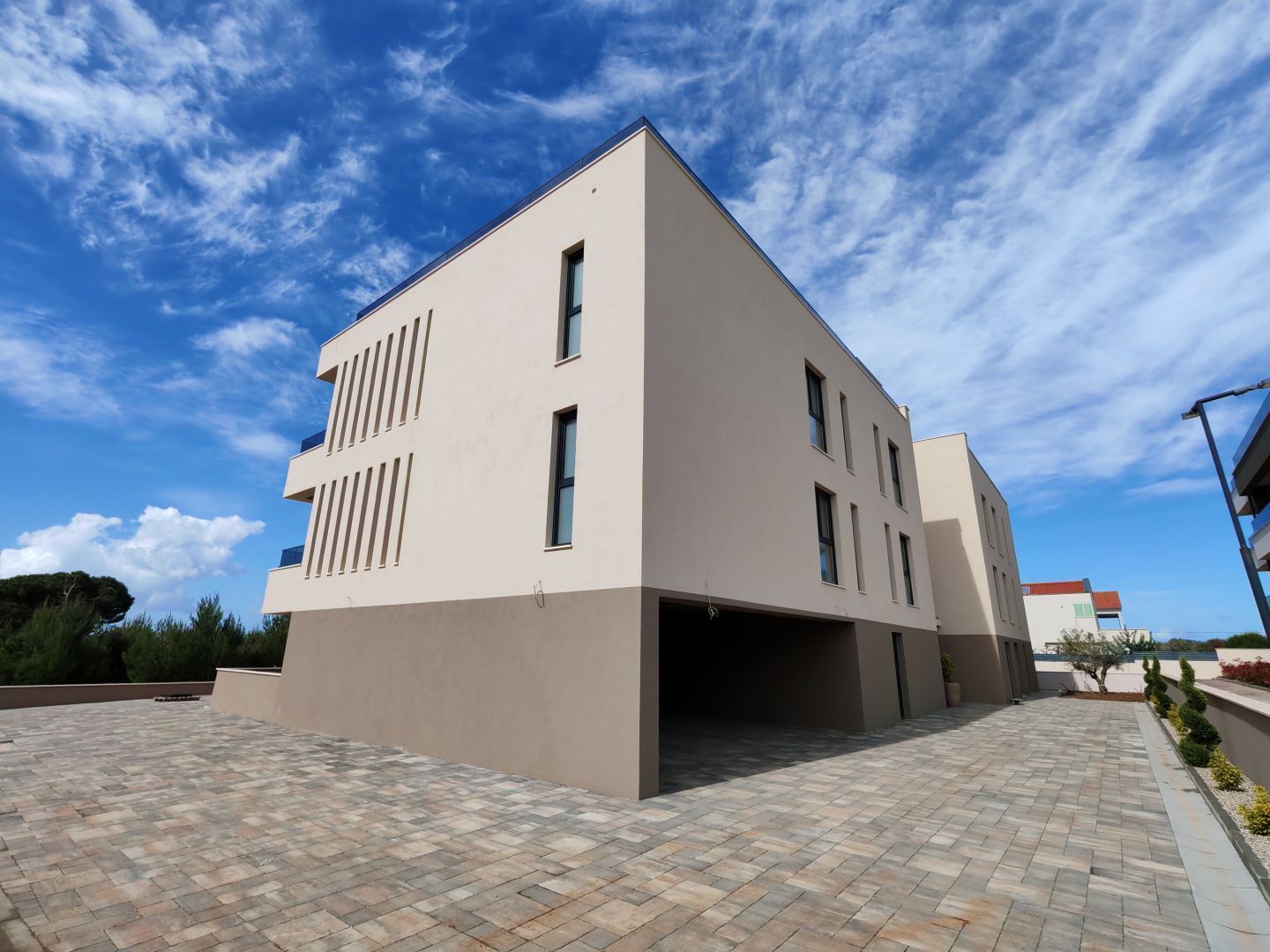 ZADAR, PRIVLAKA – Erstklassiges Penthouse 70 Meter vom Meer entfernt mit privatem Weg zum Strand! S9. Zum Verkauf steht die exklusive Penthouse-Wohnung S9, gelegen im zweiten Stock eines modernen Neubaus in einem ruhigen Teil von Privlaka. Dieses geräumige Apartment bietet eine perfekte Kombination aus Eleganz, Komfort und Luxus. Was es auszeichnet, sind der herrliche Meerblick, die große Terrasse im Obergeschoss und die private Dachterrasse, die ideal zum Entspannen, für gesellige Stunden und zum Genießen der Sonnenuntergänge ist. Das Penthouse besteht aus drei luftigen Schlafzimmern, jeweils mit eigenem Bad, einem zusätzlichen Gäste-WC, einem geräumigen Wohnzimmer mit offener Küche und Essbereich, einer Waschküche sowie einem eigenen Abstellraum. Ein Mehrwert sind zwei gesicherte Parkplätze, die diese Wohnung noch praktischer für den Alltag oder die touristische Vermietung machen. Das Gebäude liegt nur 70 Meter vom Meer und Strand entfernt, verfügt über einen privaten Zugang, ist mit einem Aufzug ausgestattet und nach höchsten Standards gebaut – einschließlich Fußbodenheizung im Wohnbereich, Klimaanlagen in allen Räumen, elektrischen Jalousien, Moskitonetzen und hochwertigen Keramikfliesen. Große Glaswände und französische Fenster sorgen für viel natürliches Licht und erzeugen ein Gefühl von Offenheit und Luxus. Privlaka ist eine malerische dalmatinische Stadt, die mit ihrer natürlichen Schönheit, ihren Sandstränden und dem kristallklaren Meer begeistert und gleichzeitig eine ruhige und entspannte Atmosphäre bietet. In unmittelbarer Nähe befinden sich das historische Nin, die Insel Vir und Zadar – eine Stadt reich an Geschichte, Kultur und urbaner Energie. Dieses Penthouse ist eine ideale Gelegenheit für alle, die das Besondere suchen – sei es als luxuriöses Zuhause am Meer, als Wochenendoase oder als Investition mit hervorragendem Potenzial. Kontaktieren Sie uns gerne für weitere Informationen und um einen Besichtigungstermin zu vereinbaren.