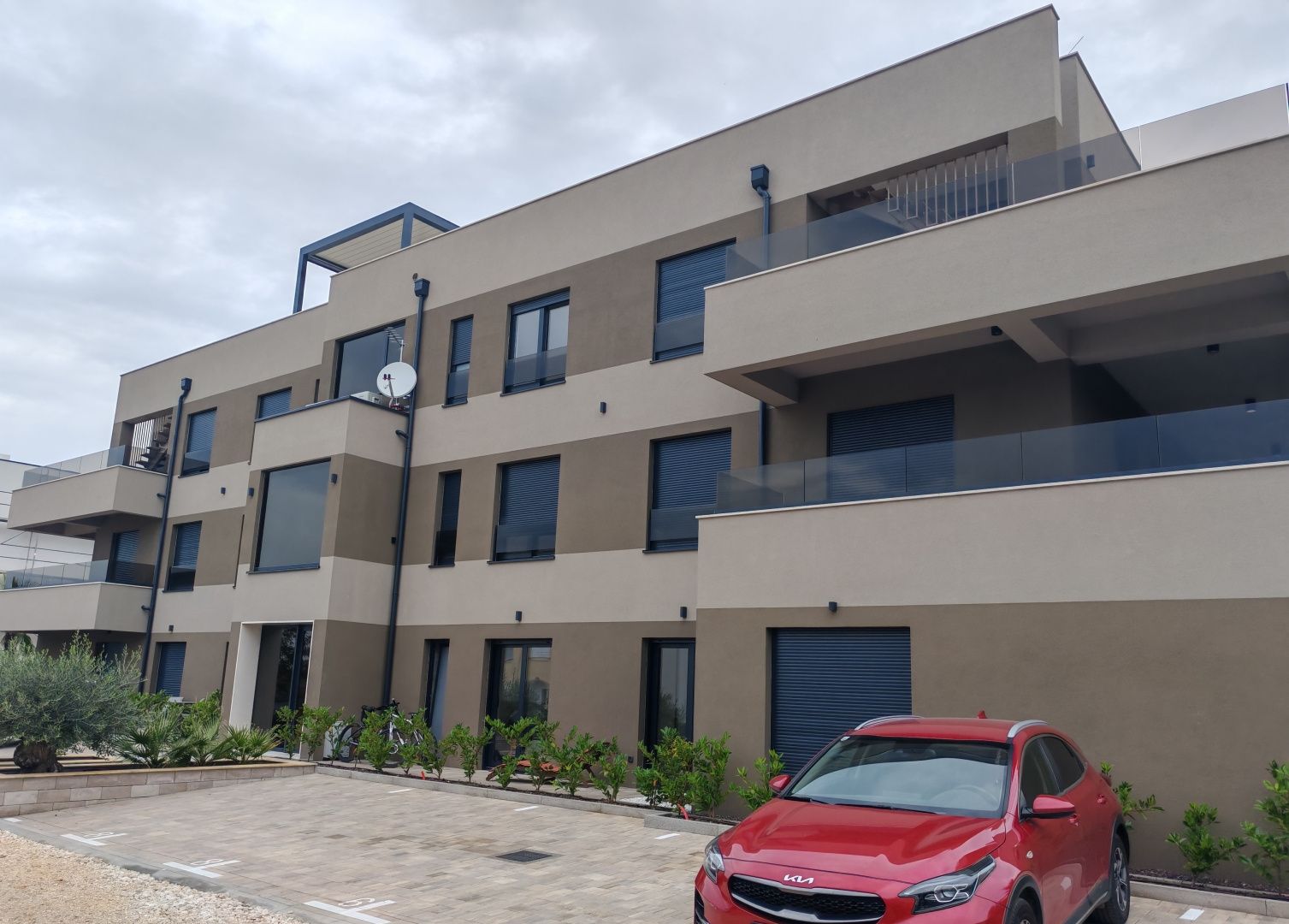 ZADAR, SABUNIKE – Moderne Wohnung mit Meerblick in der Anlage S5 Zum Verkauf steht eine moderne, im Bau befindliche Wohnung in Sabunike, Privlaka in der Nähe von Zadar. Die Wohnung mit einer Gesamtnutzfläche von 122,35 m2 befindet sich im ersten Obergeschoss eines kleinen zweistöckigen Wohnhauses mit Aufzug und 8 Wohneinheiten. Es besteht aus drei Schlafzimmern, einer Küche, einem Esszimmer, zwei Bädern und einer Terrasse. Zur Wohnung gehören außerdem zwei private PKW-Stellplätze im Hof des Gebäudes, sodass die Gesamtnutzfläche der Wohnung inklusive aller Nebengebäude 113,95 m2 beträgt. Beim Bau wurden hochwertige Materialien verwendet, wie etwa Wärmedämmung an der Fassade, Aluminium-Tischlerei, ein Panoramaaufzug, steinverkleidete Treppen und Wände sowie einbruch- und feuerfeste Türen. Für die Bodenbeläge wurde italienische Keramik verwendet, die Wohnungen sind klimatisiert und in den Bädern ist eine Fußbodenheizung installiert. Der voraussichtliche Einzugstermin ist im ersten Halbjahr 2025. Die Anlage ist 500 m vom Meer und dem ersten Strand entfernt und befindet sich in einem der attraktivsten Tourismusziele in der Umgebung von Zadar, in der Stadt Privlaka, die mit wunderschönen Stränden und kristallklarem Meer begeistert. In der Nähe gibt es viele interessante Sehenswürdigkeiten, wie zahlreiche Nationalparks und Naturparks sowie die wunderschönen Inseln im Meer von Zadar. So begeistert beispielsweise die 20 km entfernte Insel Pag mit ihrem gastronomischen Angebot und in der historischen Stadt Nin, nur 5 km von Privlaka entfernt, befindet sich der längste Sandstrand Kroatiens, Kraljičina plaza. Das Stadtzentrum, die Stadt Zadar, ist 18 km und der nächstgelegene Flughafen, Zemunik, 30 km entfernt.