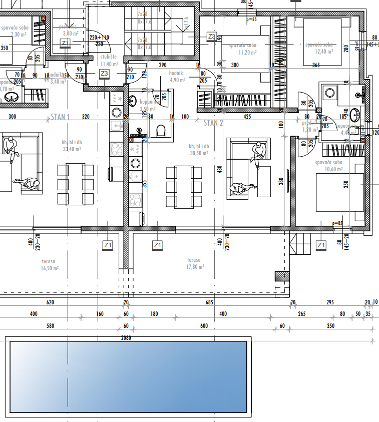 ZADAR, SUKOŠAN – Hochwertiger Neubau! Fußbodenheizung, beheizter Pool, 120 Meter vom Meer entfernt...! S2 Zum Verkauf stehen neue, moderne Wohnungen im schönen Sukošan, in einem Gebäude mit insgesamt sechs Wohneinheiten – ideal für ein ruhiges Leben oder als Investition für Urlaub und Vermietung. Jede Wohnung verfügt über drei Schlafzimmer, zwei Badezimmer, ein gemütliches Wohnzimmer, Esszimmer und Küche sowie eine großzügige Terrasse zum Genießen der frischen Luft. Das Gebäude ist nur 120 Meter vom Strand entfernt – nur drei Gehminuten vom Meer entfernt. Im Erdgeschoss befindet sich ein gemeinschaftlich genutzter, beheizter Pool von 30 m², der das ganze Jahr über zum Entspannen einlädt. Rund um das Gebäude erstreckt sich ein grüner Garten, der Privatsphäre und Ruhe bietet. Jede Wohnung verfügt über einen eigenen Abstellraum, und die Penthäuser bieten zusätzlich exklusive Dachterrassen mit Panoramablick. Die Wohnungen im ersten und zweiten Stock bieten ebenfalls einen wunderschönen Meerblick. Komfort und Bauqualität sind auf höchstem Niveau: Fußbodenheizung in der gesamten Wohnung, Klimaanlage in jedem Zimmer, elektrische Rollläden, Moskitonetze... Die Fertigstellung ist für Ende 2026 geplant. Da der Eigentümer eine juristische Person ist, zahlt der Käufer keine Grundsteuer. Sukošan ist eine charmante dalmatinische Stadt, bekannt für ihre Sandstrände, das klare Meer und die Yachthäfen – ideal für Liebhaber eines ruhigen Lebens am Meer. Sie liegt nur 10 Autominuten von Zadar entfernt – einer historischen Stadt mit reichem Kulturerbe, erstklassiger Gastronomie und einer ganzjährig lebendigen Atmosphäre. Für weitere Informationen und eine Besichtigung kontaktieren Sie uns gerne – finden Sie Ihr perfektes Zuhause am Meer in Sukošan!