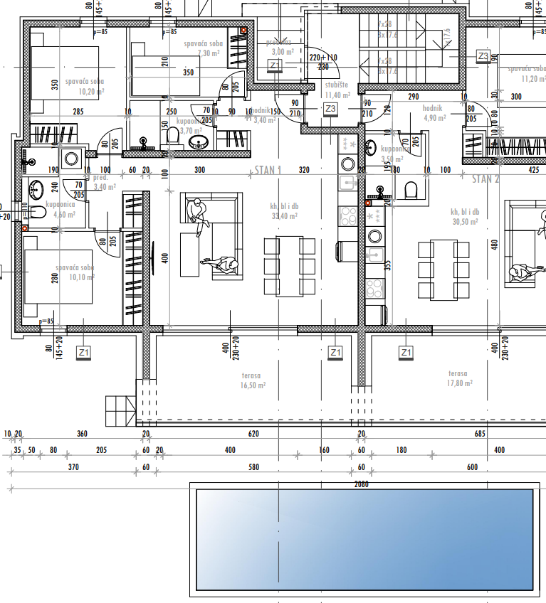 ZADAR, SUKOŠAN – Hochwertiger Neubau! Fußbodenheizung, beheizter Pool, 120 Meter vom Meer entfernt...! S1 Zum Verkauf stehen neue, moderne Wohnungen im schönen Sukošan, in einem Gebäude mit insgesamt sechs Wohneinheiten – ideal für ein ruhiges Leben oder als Investition für Urlaub und Vermietung. Jede Wohnung verfügt über drei Schlafzimmer, zwei Badezimmer, ein gemütliches Wohnzimmer, Esszimmer und Küche sowie eine großzügige Terrasse zum Genießen der frischen Luft. Das Gebäude ist nur 120 Meter vom Strand entfernt – nur drei Gehminuten vom Meer entfernt. Im Erdgeschoss befindet sich ein gemeinschaftlich genutzter, beheizter Pool von 30 m², der das ganze Jahr über zum Entspannen einlädt. Rund um das Gebäude erstreckt sich ein grüner Garten, der Privatsphäre und Ruhe bietet. Jede Wohnung verfügt über einen eigenen Abstellraum, und die Penthäuser bieten zusätzlich exklusive Dachterrassen mit Panoramablick. Die Wohnungen im ersten und zweiten Stock bieten ebenfalls einen wunderschönen Meerblick. Komfort und Bauqualität sind auf höchstem Niveau: Fußbodenheizung in der gesamten Wohnung, Klimaanlage in jedem Zimmer, elektrische Rollläden, Moskitonetze... Die Fertigstellung ist für Ende 2026 geplant. Da der Eigentümer eine juristische Person ist, zahlt der Käufer keine Grundsteuer. Sukošan ist eine charmante dalmatinische Stadt, bekannt für ihre Sandstrände, das klare Meer und die Yachthäfen – ideal für Liebhaber eines ruhigen Lebens am Meer. Sie liegt nur 10 Autominuten von Zadar entfernt – einer historischen Stadt mit reichem Kulturerbe, erstklassiger Gastronomie und einer ganzjährig lebendigen Atmosphäre. Für weitere Informationen und eine Besichtigung kontaktieren Sie uns gerne – finden Sie Ihr perfektes Zuhause am Meer in Sukošan!
