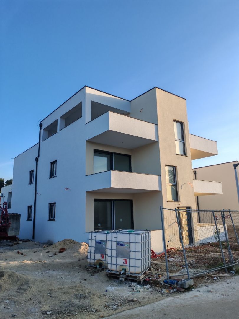 ZADAR, VIR – Elegante Erdgeschosswohnung mit Garten! Neubau! S2. In einem modernen Neubau in ruhiger und attraktiver Lage befindet sich diese schöne Erdgeschosswohnung mit eigenem Garten und zwei PKW-Stellplätzen. Dieser gut gestaltete Raum bietet zwei geräumige Schlafzimmer, ein elegantes Badezimmer, ein geräumiges Wohnzimmer und eine funktionale Küche mit Essbereich. Für zusätzlichen Komfort sorgt eine Waschküche, die die Wohnung zu einem idealen Ort für ein komfortables und unbeschwertes Leben macht. Das Gebäude besteht aus lediglich vier Wohnungen, zu denen jeweils zwei Stellplätze gehören. Gebaut wird nach höchsten und modernsten Standards, wobei besonderes Augenmerk auf die Qualität der Materialien und die Energieeffizienz gelegt wird. Alle Wohnungen werden mit hochwertiger PVC-Tischlerei mit elektrischen Rollläden und luxuriöser Sanitärausstattung ausgestattet. Eine Fußbodenheizung im Badezimmer und drei Klimaanlagen sorgen das ganze Jahr über für optimale Temperaturen. Das Gebäude ist von neu gebauten Apartments und modernen Doppelhaushälften mit Swimmingpools umgeben und bietet so ein angenehmes Ambiente und ein hohes Maß an Privatsphäre. Jede Wohnung verfügt über einen separaten Anschluss an das öffentliche Wasser-, Abwasser- und Stromnetz, was zusätzlich völlige Unabhängigkeit und Wohnkomfort garantiert. Die Insel Vir, bekannt für ihre natürliche Schönheit, sauberen Strände und das kristallklare Meer, ist das perfekte Reiseziel für alle, die ein ruhiges, aber ereignisreiches Leben am Meer suchen. Mit zahlreichen Einrichtungen, einem großen Angebot an Restaurants und der Nähe zu Zadar ist Vir einer der begehrtesten Orte zum Leben und Urlaub. Verpassen Sie nicht die Gelegenheit, in Ihre Traumimmobilie zu investieren – kontaktieren Sie uns für weitere Informationen und um einen Besichtigungstermin zu vereinbaren! berechnet