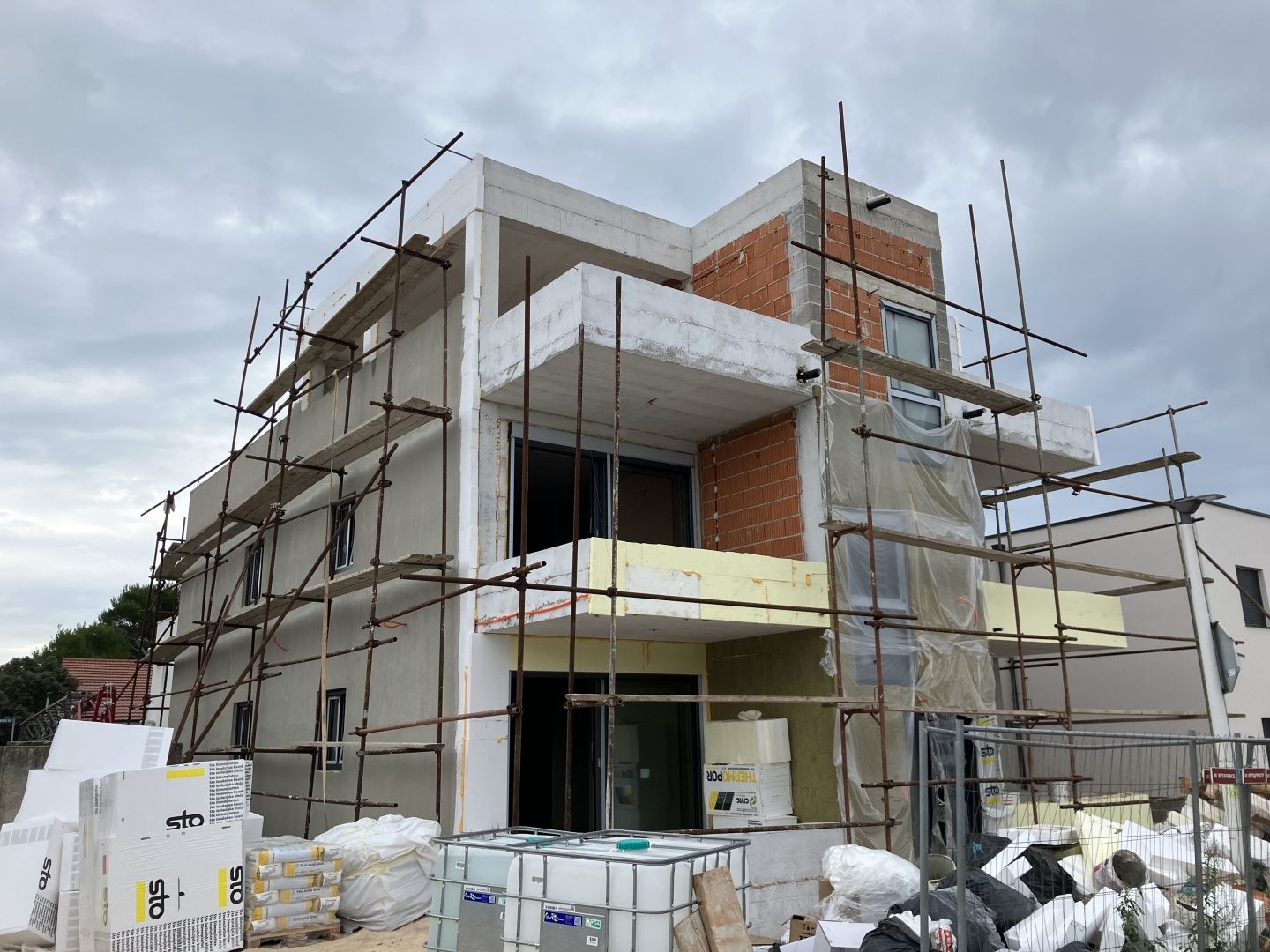 ZADAR, VIR – Hochwertige Wohnung mit Dachterrasse und wunderschönem Meerblick! Neubau! S4. In einem modern konzipierten Neubau, in einer ruhigen und attraktiven Gegend gelegen, befindet sich im ersten Stock ein luxuriöses Apartment mit privater Dachterrasse, die einen spektakulären Panoramablick auf das Meer bietet. Dieses exklusive Anwesen ist die ideale Wahl für alle, die die perfekte Mischung aus Komfort, Eleganz und mediterranem Lebensstil suchen. Die Wohnung besteht aus zwei geräumigen Schlafzimmern, einem eleganten Badezimmer, einem hellen und luftigen Wohnzimmer und einer modernen Küche mit Essbereich. Für zusätzliche Funktionalität sorgt ein praktischer Waschraum, während die Wohnung über drei Klimaanlagen zum Heizen und Kühlen sowie eine Fußbodenheizung im Badezimmer verfügt, die das ganze Jahr über für angenehme Temperaturen sorgen. Was dieses Anwesen wirklich besonders macht, ist die geräumige private Dachterrasse mit Vorbereitung für eine Sommerküche, Whirlpool und luxuriösem Sonnendeck. Die Terrasse ist teilweise überdacht, zudem besteht die Möglichkeit, den Raum mit Glaswänden zu schließen, wodurch eine einzigartige Oase der Entspannung und des geselligen Beisammenseins mit einem unvergesslichen Blick auf das Meer entsteht. Das Gebäude mit nur vier Wohnungen wurde nach höchsten Baustandards errichtet und besticht durch hochwertige PVC-Tischlerei mit elektrischen Rollläden und luxuriöser Sanitärausstattung. Jede Wohnung verfügt über einen separaten Anschluss an das öffentliche Wasser-, Abwasser- und Stromnetz, außerdem sind zwei PKW-Stellplätze vorhanden. Die Umgebung besteht aus neu gebauten Villen und Doppelhaushälften mit Swimmingpools, die Ruhe und ein exklusives Ambiente bieten. Die Insel Vir, bekannt für ihr kristallklares Meer, ihre wunderschönen Strände und ihr reichhaltiges Angebot an Einrichtungen, ist einer der begehrtesten Orte zum Leben und Urlaub an der Adria. Die Nähe zu Zadar ermöglicht die perfekte Kombination aus entspanntem Inselleben und Zugang zu allen städtischen Annehmlichkeiten. Verpassen Sie nicht die Gelegenheit, sich Ihr eigenes Stück vom Paradies zu sichern – kontaktieren Sie uns für weitere Informationen und um einen Besichtigungstermin zu vereinbaren! berechnet