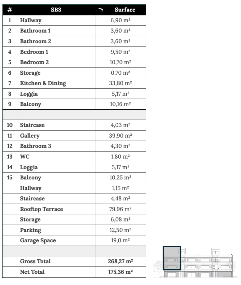 ZADAR, ZATON – Zweistöckiges Penthouse mit wunderschöner Aussicht, 95 Meter vom Meer entfernt! SB3. Nur 95 Meter vom Meer entfernt, in der ruhigen Stadt Zaton, entsteht ein modernes Projekt mit neun Luxusapartments in einer geschlossenen Anlage mit Rampe am Eingang. Die Siedlung ist als private Oase konzipiert und besteht aus fünf Gebäuden, in denen die Bewohner absolute Sicherheit und Privatsphäre genießen. Die Apartments in den oberen Stockwerken verfügen über geräumige Dachterrassen mit herrlichem Blick auf das Meer und die Inseln, während die Einheiten im Erdgeschoss über eigene Gärten verfügen. Es besteht auch die Möglichkeit, gegen eine zusätzliche Gebühr komplett möblierte Apartments zu erwerben. Besonderes Augenmerk wurde auf die Innenarchitektur, moderne technologische Lösungen und hochwertige Materialien gelegt, um das Haus funktional, sicher und komfortabel zu machen. Das Smart-Home-System ermöglicht die Steuerung von Beleuchtung, Klimaanlage und Heizung. Die Konstruktion besteht aus einer Stahlbetonkonstruktion mit 10 cm Wärmedämmung. Aluminiumfenster mit elektrischen Rollläden, Multisplit-Klimaanlagen, Fußbodenheizung in den Bädern und im Wohnzimmer, Video-Gegensprechanlage, Überwachungskameras sowie Einbruch- und Brandschutztüren gehören zur Standardausstattung. Es wurden erstklassige Sanitärkeramik und Bodenbeläge namhafter Hersteller verwendet. Die Fertigstellung der Arbeiten ist für Ende 2025 geplant. Das zweistöckige Penthouse SB3 befindet sich im zweiten Stock und besteht aus zwei Schlafzimmern, drei Bädern, einem Abstellraum und einem geräumigen Wohnbereich mit Küche und Esszimmer. Sein besonderer Wert liegt auf der Dachterrasse mit herrlichem Meerblick und einem Stellplatz in der Garage. Es besteht die Möglichkeit, den Grundriss zu ändern und ein weiteres Schlafzimmer hinzuzufügen. In diesem Fall würde der Preis 1.284.000 € betragen. Zaton ist eine ruhige dalmatinische Stadt, die für ihr kristallklares Meer, ihre Kieselstrände und ihre entspannte mediterrane Atmosphäre bekannt ist. Zadar liegt in der Nähe – eine Stadt reich an Geschichte, kulturellen Sehenswürdigkeiten und erstklassigen Restaurants, ein ideales Reiseziel zum Leben und für den Urlaub. Der Verkäufer ist eine juristische Person und der Käufer zahlt keine Grundsteuer. Für weitere Informationen und zur Vereinbarung eines Besichtigungstermins kontaktieren Sie uns bitte.