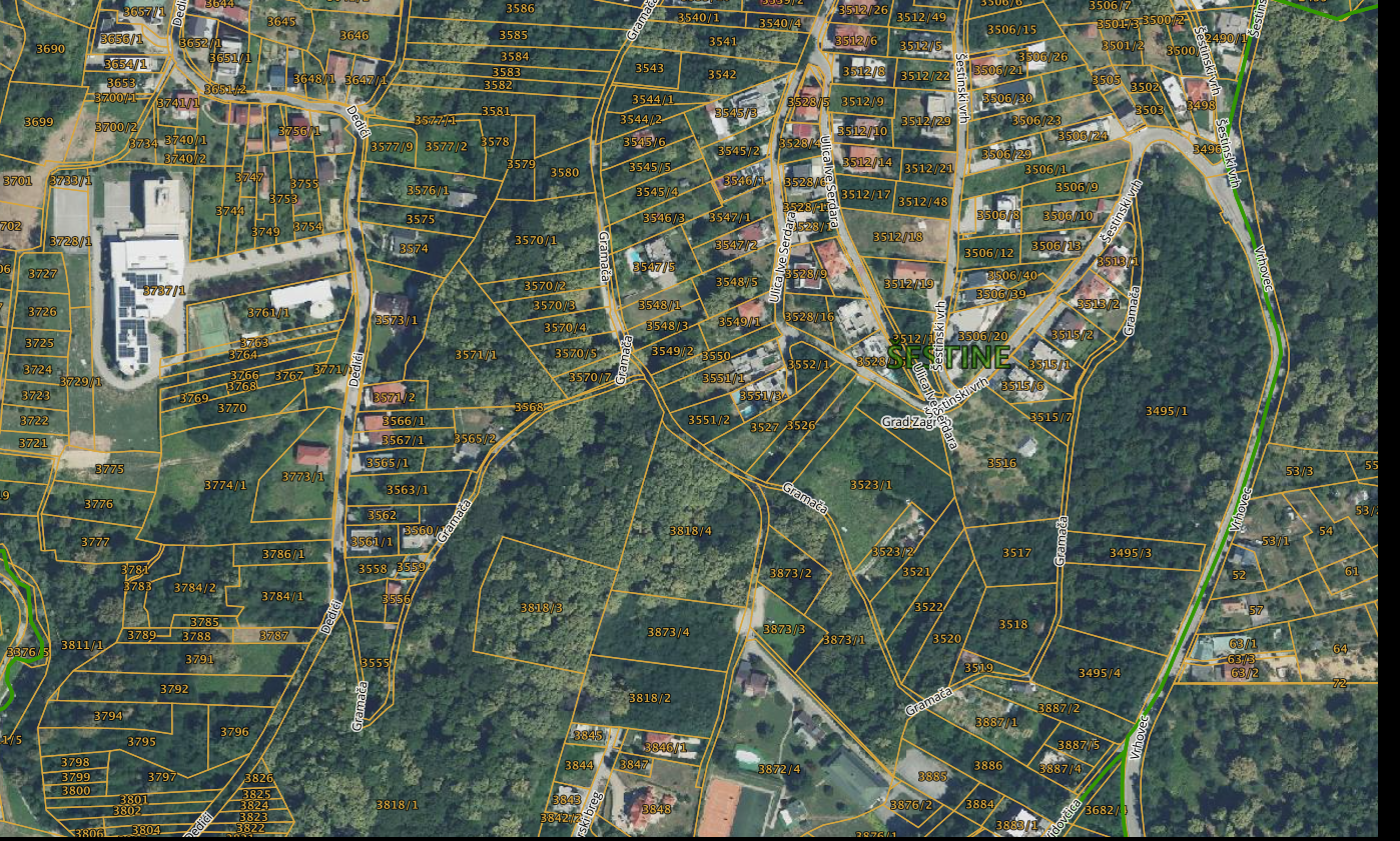 ZAGREB, ŠESTINE – Sonniges Grundstück mit eingetragenem Haus und Zufahrt zu zwei Straßen Zum Verkauf steht ein attraktives, 1024 m² großes Grundstück in ruhiger, grüner Lage in Šestine mit herrlichem Panoramablick auf Zagreb. Das nach Süden ausgerichtete Grundstück liegt an einem sonnigen Hang und ist von Einfamilienhäusern und viel Grün umgeben. Die Grundstücksmaße betragen ca. 12,5 m x 82 m. Gemäß dem Flächennutzungsplan der Stadt Zagreb (GUP) befindet sich der größte Teil des Grundstücks in einem Wohngebiet. Es liegt im Wohngebiet Podsljeme 2.2, wo der Bau von freistehenden Häusern bis zu 400 m² Wohnfläche in GFK-Bauweise mit maximal zwei oberirdischen Geschossen plus Dachgeschoss oder Untergeschoss zulässig ist. Die Mindestgröße des Baugrundstücks beträgt 600 m². Auf dem Grundstück ist ein 91 m² großes Haus eingetragen. Der Neubau eines Einfamilienhauses um das bestehende Fertighaus herum hat bereits begonnen. Dies bietet dem zukünftigen Eigentümer Flexibilität, den Bau fortzusetzen oder ein neues Projekt zu entwickeln. Vorteile des Grundstücks: * Wunderschöner Panoramablick auf Zagreb * Südausrichtung und sonnige Lage * Anbindung an zwei Straßen * Bushaltestelle in wenigen Gehminuten erreichbar * Infrastruktur direkt am Grundstück * Ruhige Wohngegend * Ideale Gelegenheit zum Bau eines Einfamilienhauses oder einer Stadtvilla Dokumentation und Eigentumsverhältnisse: * Einwandfreies Grundbuchblatt (1/1) * Grundstück kürzlich geodätisch vermessen und mit dem Grundbuch abgeglichen Dies ist eine seltene Gelegenheit, Bauland in begehrter Lage unterhalb von Sljeme mit Blick auf die Stadt, guter Verkehrsanbindung und klaren städtebaulichen Vorgaben zu erwerben.