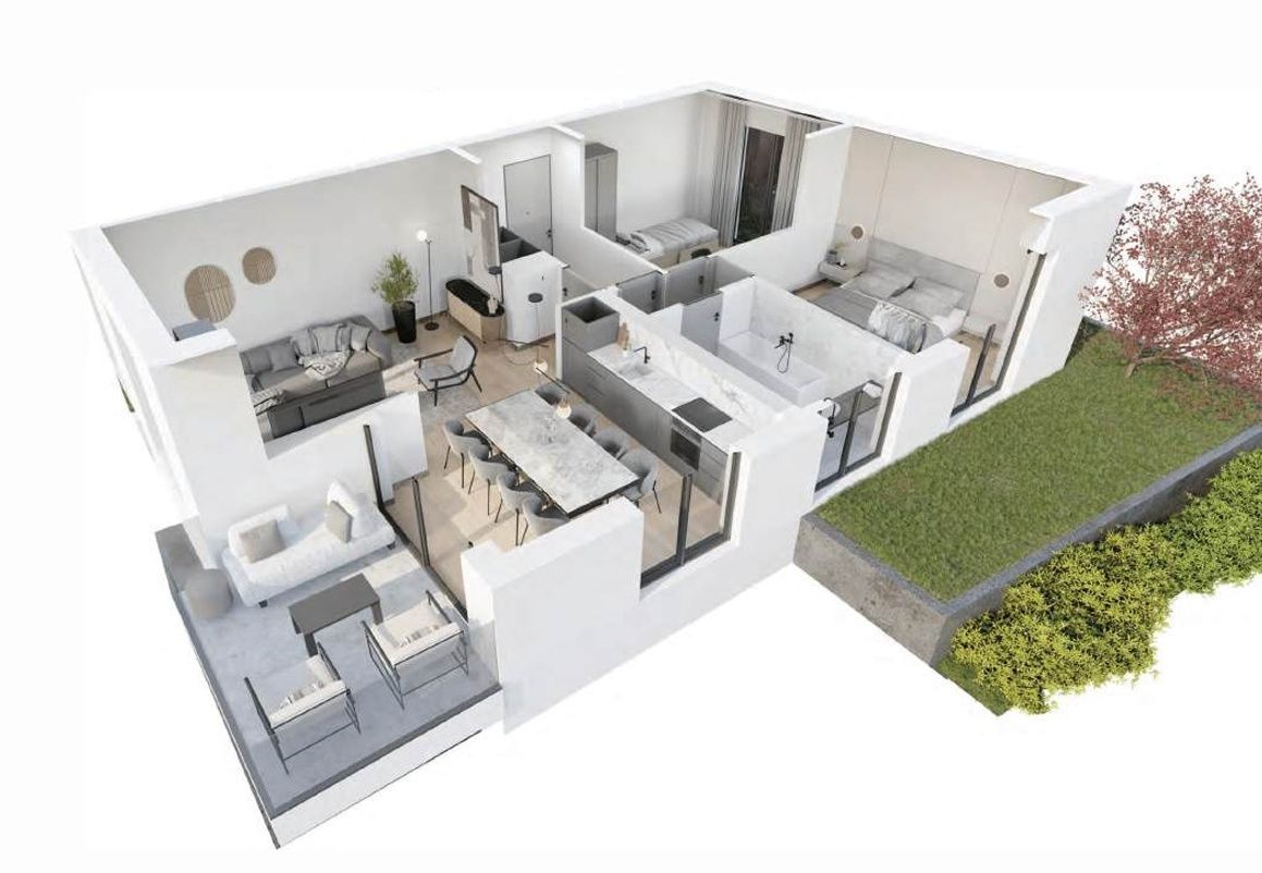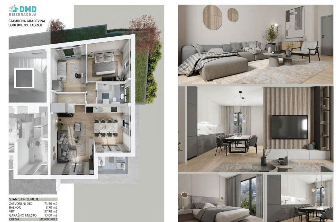 ZAGREB, SREBRNJAK – Moderne 3-Zimmer-Wohnung in ruhiger Lage In ruhiger, grüner Lage, nur wenige Fahrminuten vom Stadtzentrum entfernt, entsteht ein modernes Wohnprojekt mit geplantem Einzug im ersten Quartal 2026. In unmittelbarer Nähe befinden sich alle Annehmlichkeiten für ein komfortables Leben: Schule, Kindergarten, Geschäfte, öffentliche Verkehrsmittel, Parks und Promenaden. Die 73,56 m² große Wohnung befindet sich im Erdgeschoss eines Gebäudes mit Aufzug. Der Grundriss ist äußerst funktional gestaltet und legt Wert auf Komfort, ein luftiges Ambiente und viel Tageslicht. Die Wohnung besteht aus einem Wohnzimmer mit Essbereich und Küche, zwei Schlafzimmern, einem Badezimmer, einem Flur und einem 8,70 m² großen Balkon, der viel Platz zum Entspannen im Freien und in privater Atmosphäre bietet. Zusätzlich gehören ein 15,55 m² großer Garagenstellplatz und ein Abstellraum im Untergeschoss zur Wohnung. Das Gebäude wurde nach höchsten Energieeffizienzstandards (A+ Zertifikat) errichtet. Der Bauherr verwendet hochwertige Materialien: PVC-Fenster und -Türen mit dreifach verglaster Argonfüllung, einbruch- und feuerfeste Türen, Eichenparkett, erstklassige Keramik und rutschfeste Fliesen auf Terrassen und Balkonen. Heizung und Kühlung erfolgen über eine Wärmepumpe mit Fußbodenheizung. Alle Installationen (Strom, Wasser, Gas) sind separat. Die Wohnungen sind mit einem Brennwertkessel, geräuscharmer Lüftung, Moskitonetzen, Glasfaseranschluss und Klimaanlage ausgestattet. Die Wohnung ist auf maximale Funktionalität und Komfort ausgelegt. Die Verbindung zur Natur durch den eigenen Garten macht sie zur idealen Wahl für ein ruhiges Familienleben.