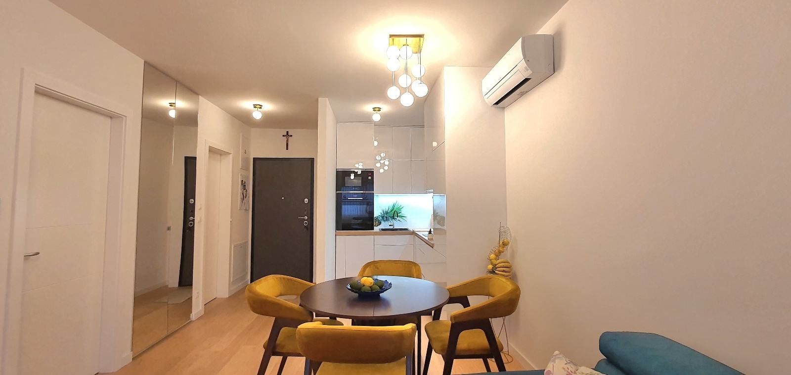 ZAGREB, TREŠNJEVKA – Moderne Wohnung in einem Neubau, sofort bezugsfertig, Garage vorhanden Wir bieten eine moderne und komplett möblierte Wohnung in einem hochwertigen Neubau in Trešnjevka an. Die Wohnung befindet sich im 1. Obergeschoss eines erst zwei Jahre alten Wohnhauses in einer ruhigen und angenehmen Straße ohne viel Verkehr – ideal zum Wohnen und Entspannen. Die 44,21 m² große Wohnung ist dank großer Glasflächen und einer durchdachten Raumaufteilung besonders hell und lichtdurchflutet. Dadurch wirkt sie den ganzen Tag über luftig und warm. Sie besteht aus einem Eingangsbereich, einem Badezimmer mit WC, einem Schlafzimmer, einem Wohnzimmer mit angrenzender Küche und Essbereich sowie einer 4,71 m² großen Loggia/einem Balkon. Dieser ist mit Sicherheitsglas und einem modernen Falttürsystem ausgestattet und bietet einen zusätzlichen, angenehmen Wohnraum, der das ganze Jahr über genutzt werden kann. Die Wohnung wird komplett möbliert mit hochwertigen und exklusiven Möbeln verkauft, darunter eine hochwertige, maßgefertigte Küche mit allen Geräten, die im Preis inbegriffen sind – zusätzliche Investitionen sind nicht nötig. Sie verfügt über Fußbodenheizung in allen Räumen mit Wärmepumpe und speziellen Thermostaten, Inverter-Klimaanlagen, elektrische Aluminium-Rollläden und Insektenschutzgitter an allen Fenstern und Balkontüren. Das Gebäude ist mit einer erstklassigen, 15 cm dicken Wärmedämmung ausgestattet. Ein Aufzug der neuesten Generation mit luxuriöser Kabine und Videoüberwachung von Eingang und Garage trägt zusätzlich zu Sicherheit und Wohnkomfort bei. Die Lage der Wohnung zählt zu den begehrtesten in Trešnjevka, da sie die perfekte Balance zwischen einem ruhigen Familienumfeld und hervorragender Anbindung an den Rest der Stadt bietet. Dank der Nähe zu Universitäten, Kindergärten, Schulen, Parks, Gesundheitseinrichtungen, Geschäften, Cafés und Restaurants sowie der exzellenten Verkehrsanbindung mit Straßenbahn und Bus ist diese Wohnung ideal für komfortables Wohnen und gleichzeitig eine sichere Kapitalanlage. Eine Garage (50.000 Euro) mit Stromanschluss und Sektionaltoren eines renommierten Herstellers kann zur Wohnung erworben werden, der Kauf ist jedoch nicht verpflichtend. Es handelt sich um eine 1:1-Eigentumswohnung, die über einen Wohnkredit finanziert werden kann.